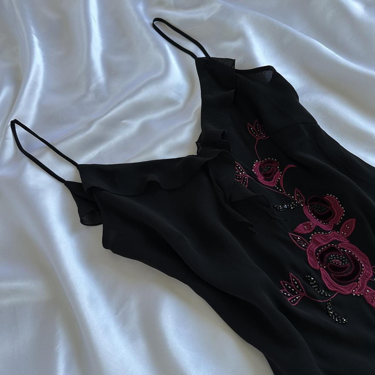 Black Elegant Delicate Red Rose Floral Beaded Long Chiffon Ball Gown Evening Dress Party Dress Prom Dress gh3691