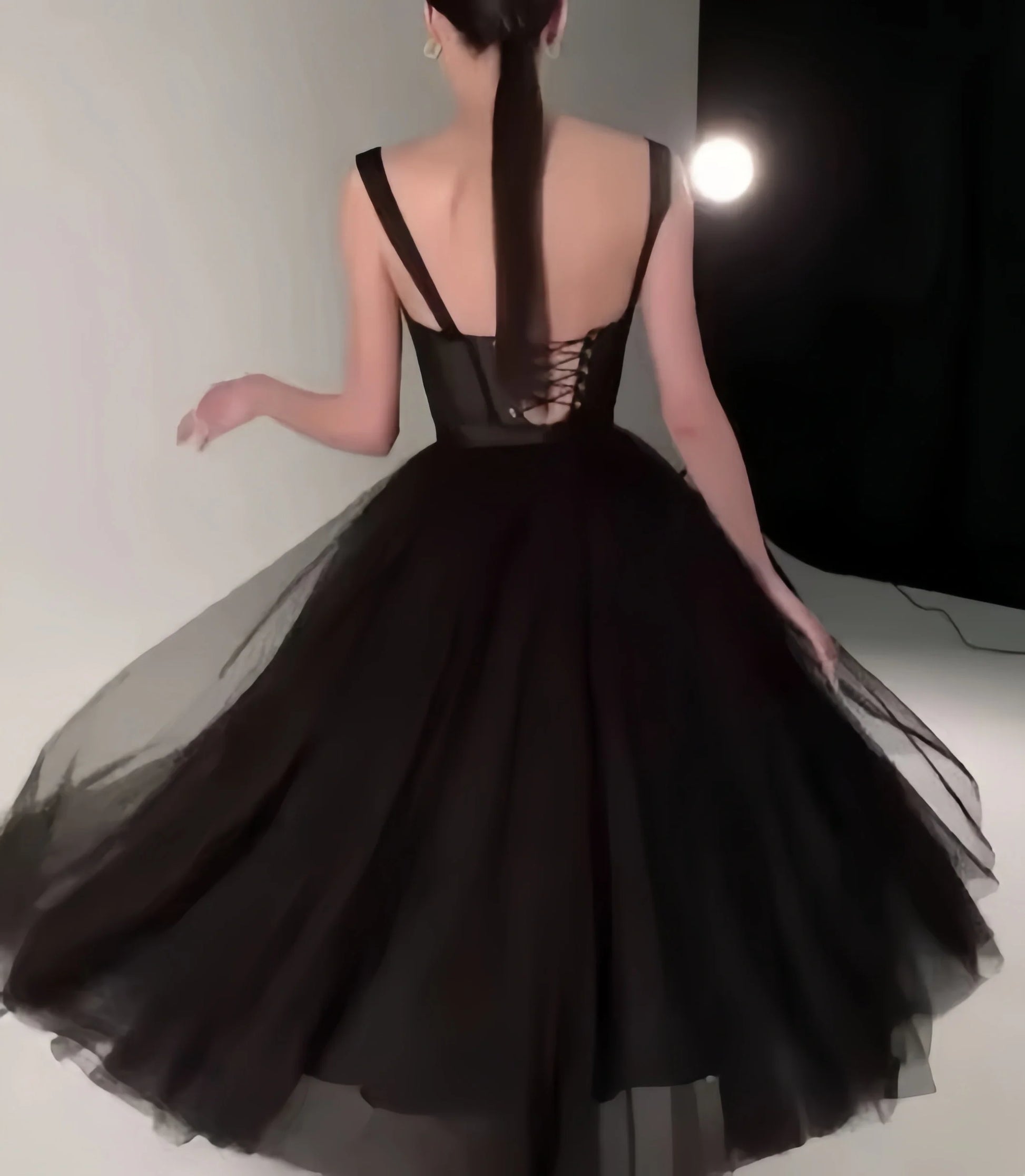 Black Midi Dress, Tulle Prom Dress, Black Formal Dresses, A-line Evening Dresses