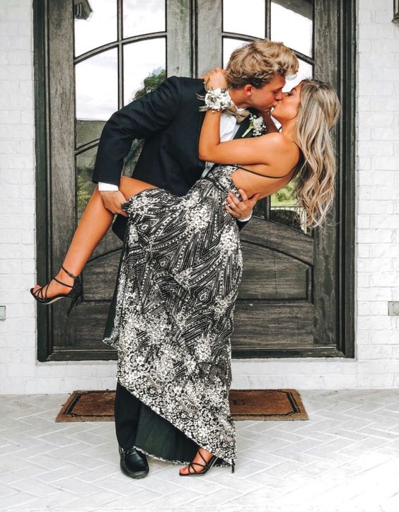 black sequin beaded long prom dress Formal Dress Prom Dress P6335