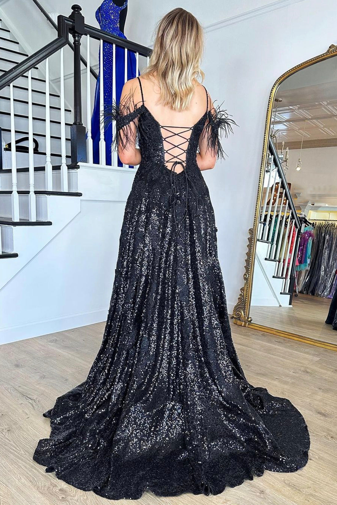 Prepare to make a striking statement in this Black Sequins Lace Long Prom Dress, a masterpiece of sophistication and allure. This gown is the epitome of elegance and is perfect for proms, evening parties, or any event where you want to captivate the spotlight.
