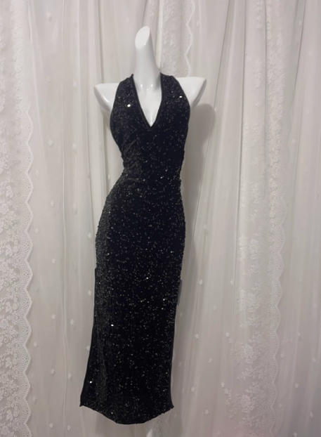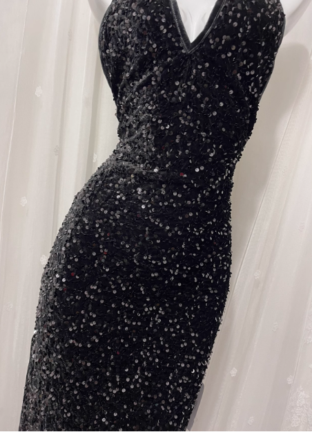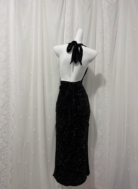 Black Sexy Backless Halter Neck Sequined Prom Dress P3464