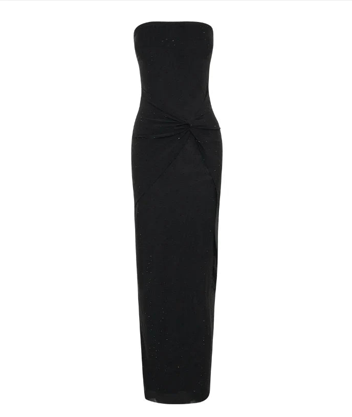 Black shiny stylish elegant off-shoulder sequined long slim fit floor-length ball gown evening dress party dress gh3474