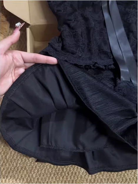 Black Swan Girl Halter Neck High Waist Lace Cake Puff Homecoming Dress P3424