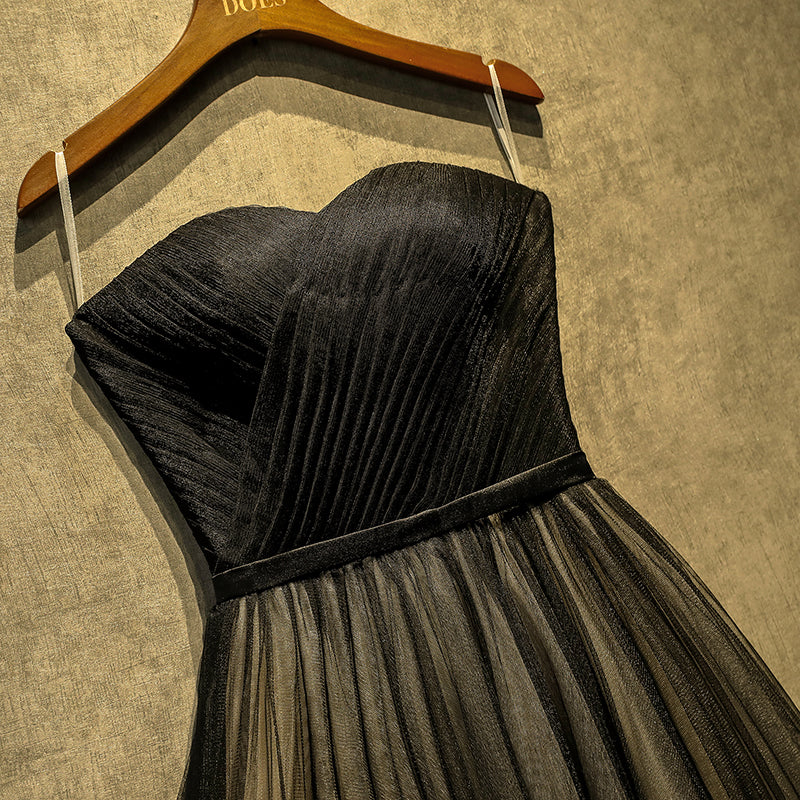 Black sweetheart neck tulle long prom dress, black evening dress 7926