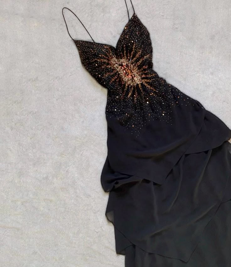 Black vintage fashion beaded spaghetti strap long chiffon formal prom dress, evening dress, party dress gh3502