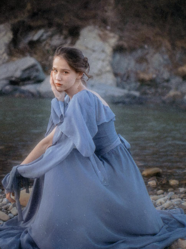 Blue A Line Straps Chiffon Slit Long Prom Dress Evening Dress with Cape SH3319
