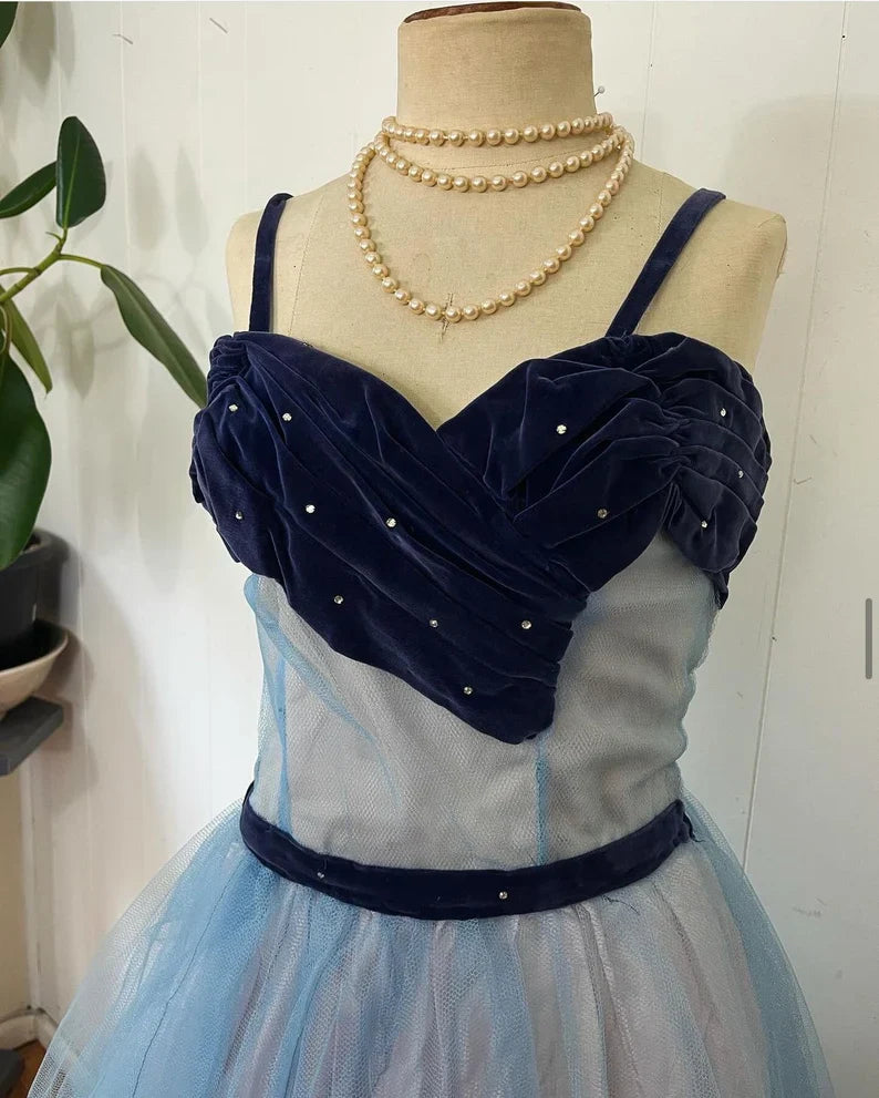 Blue cute sweet delicate beaded spaghetti straps long tulle prom dress evening dress party dress homecoming dress gh3488
