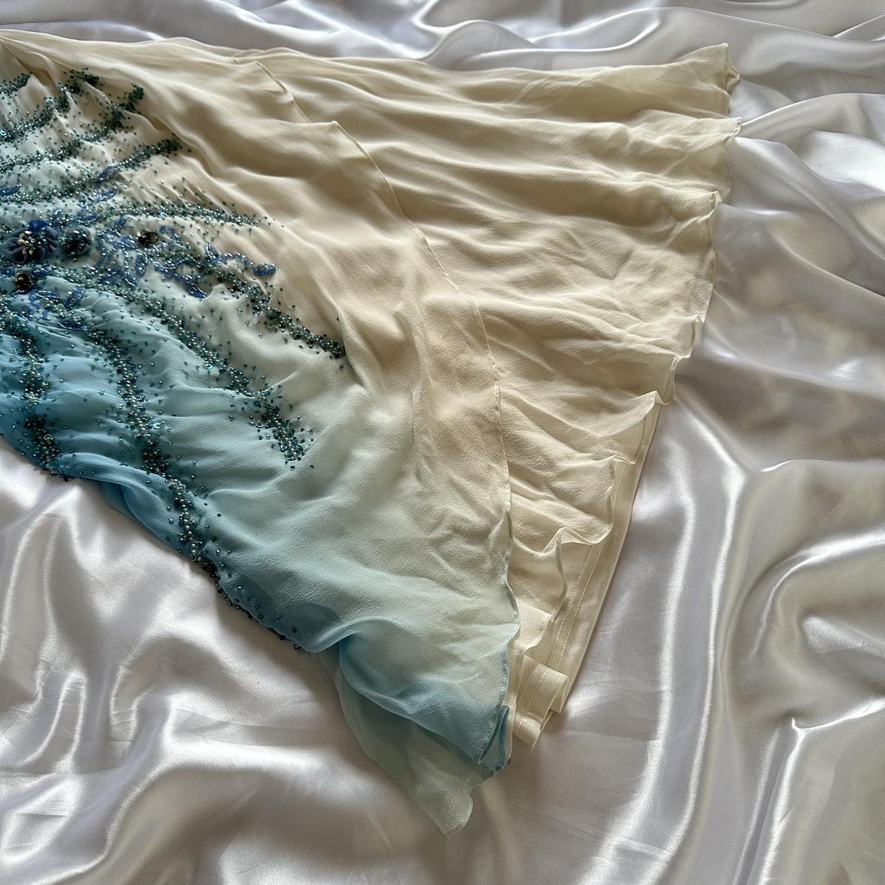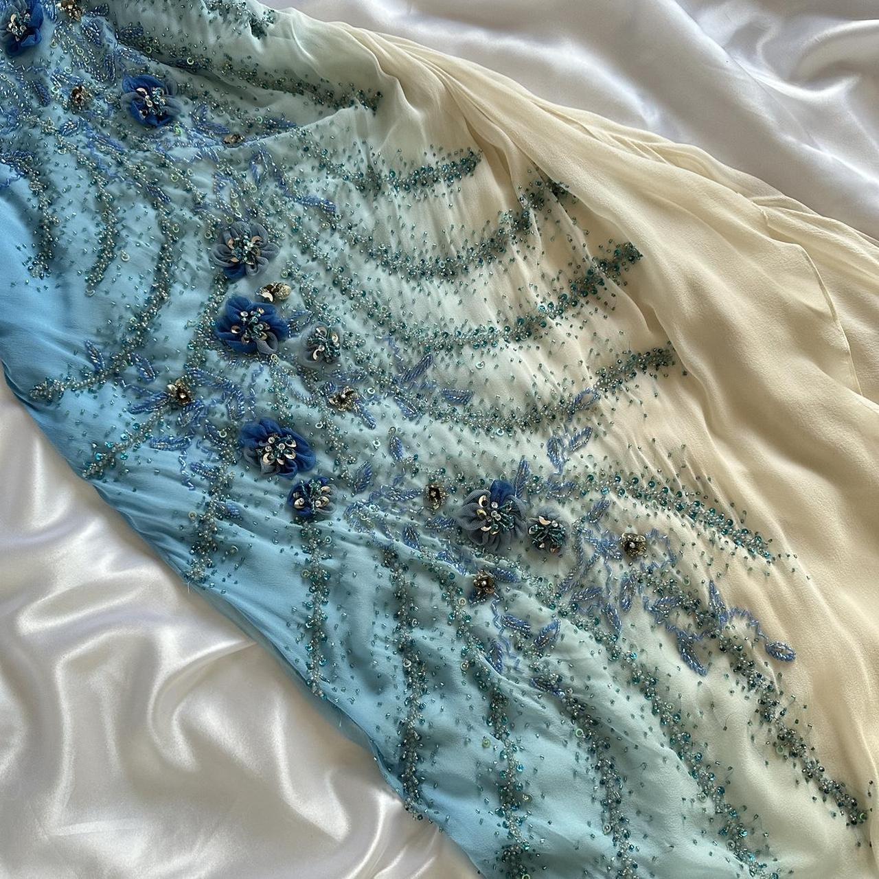 Blue gorgeous beautiful stylish unique elegant exquisite floral beading long chiffon ball gown evening dress party dress gh3562