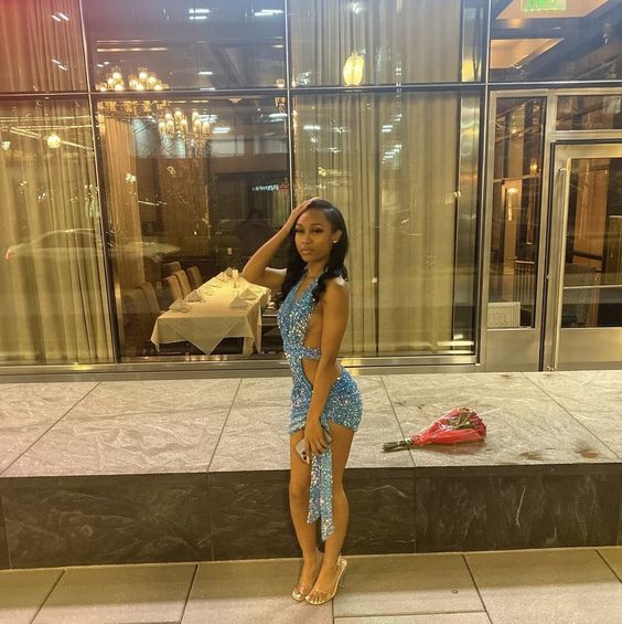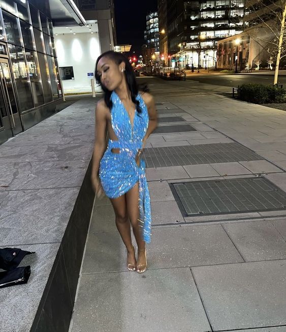 Blue sequin dress, cute dress, Short Prom Dress Homecoming Dress fg3871