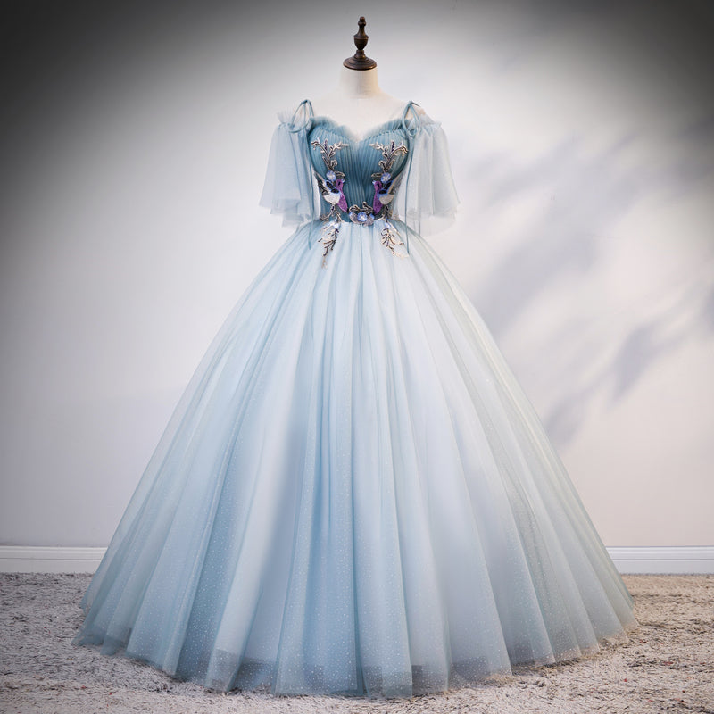 Blue sweetheart neck tulle long prom gown evening dress 8215