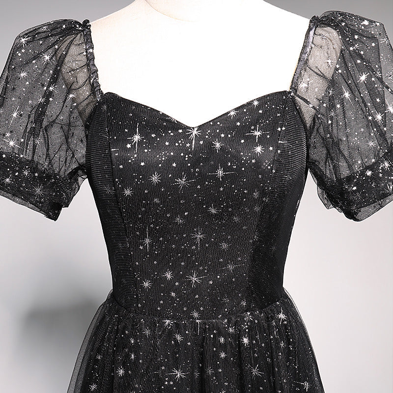 Blue tulle long A line prom dress blue evening dress 10018