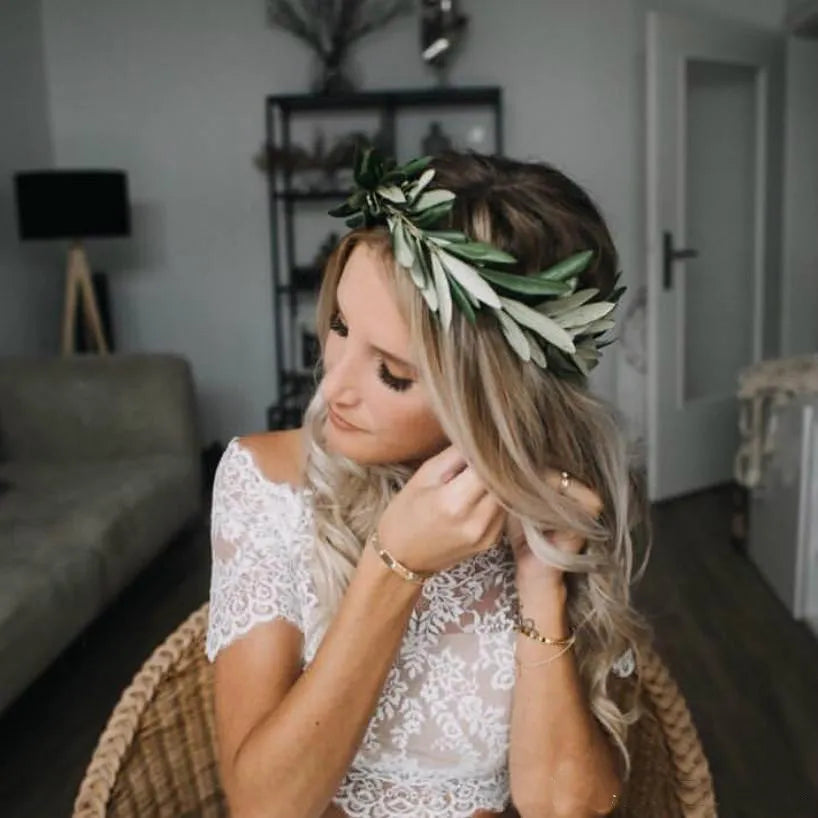 Boho Chic Lace Crop Chiffon Prom Dresses Two Piece Boho Wedding Dresses cg9947