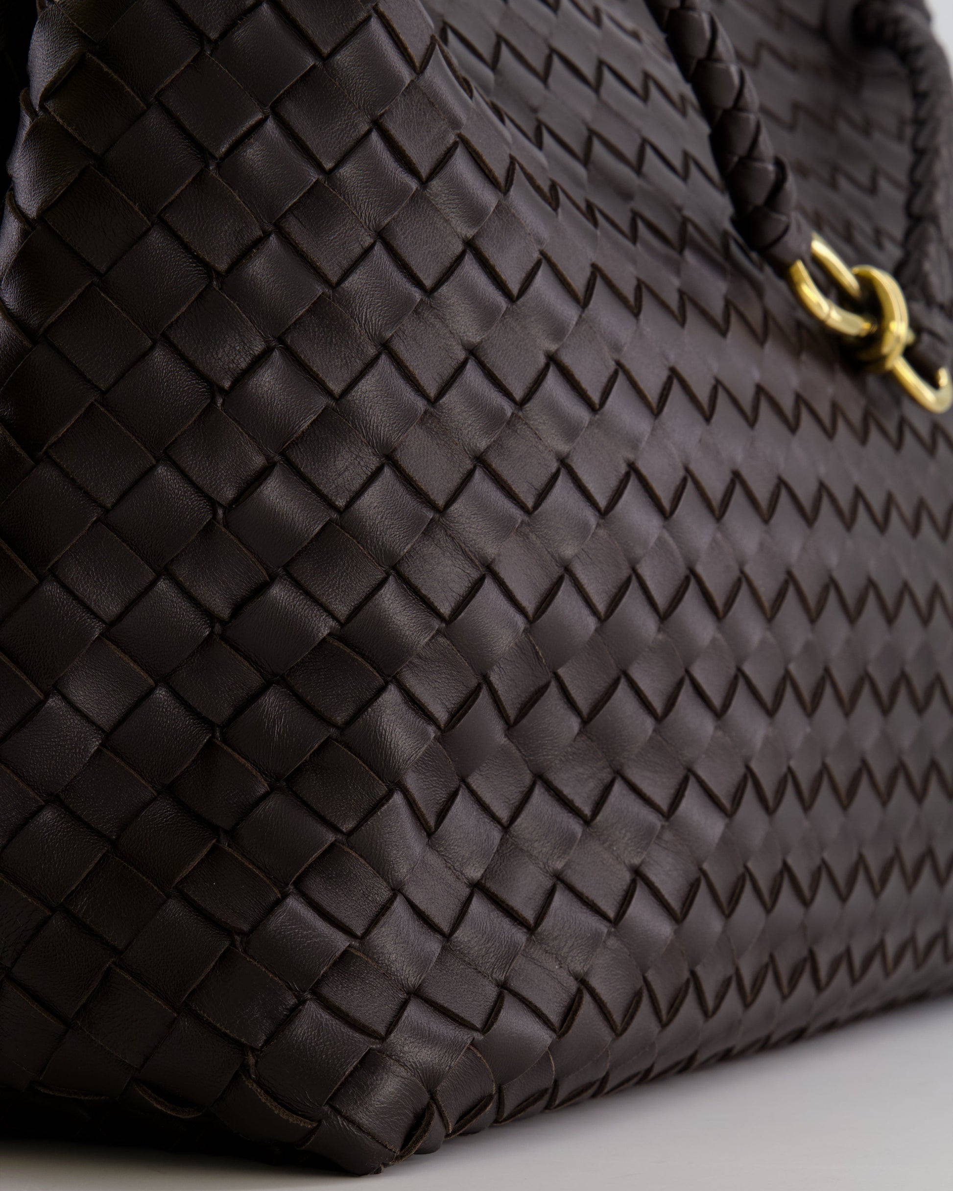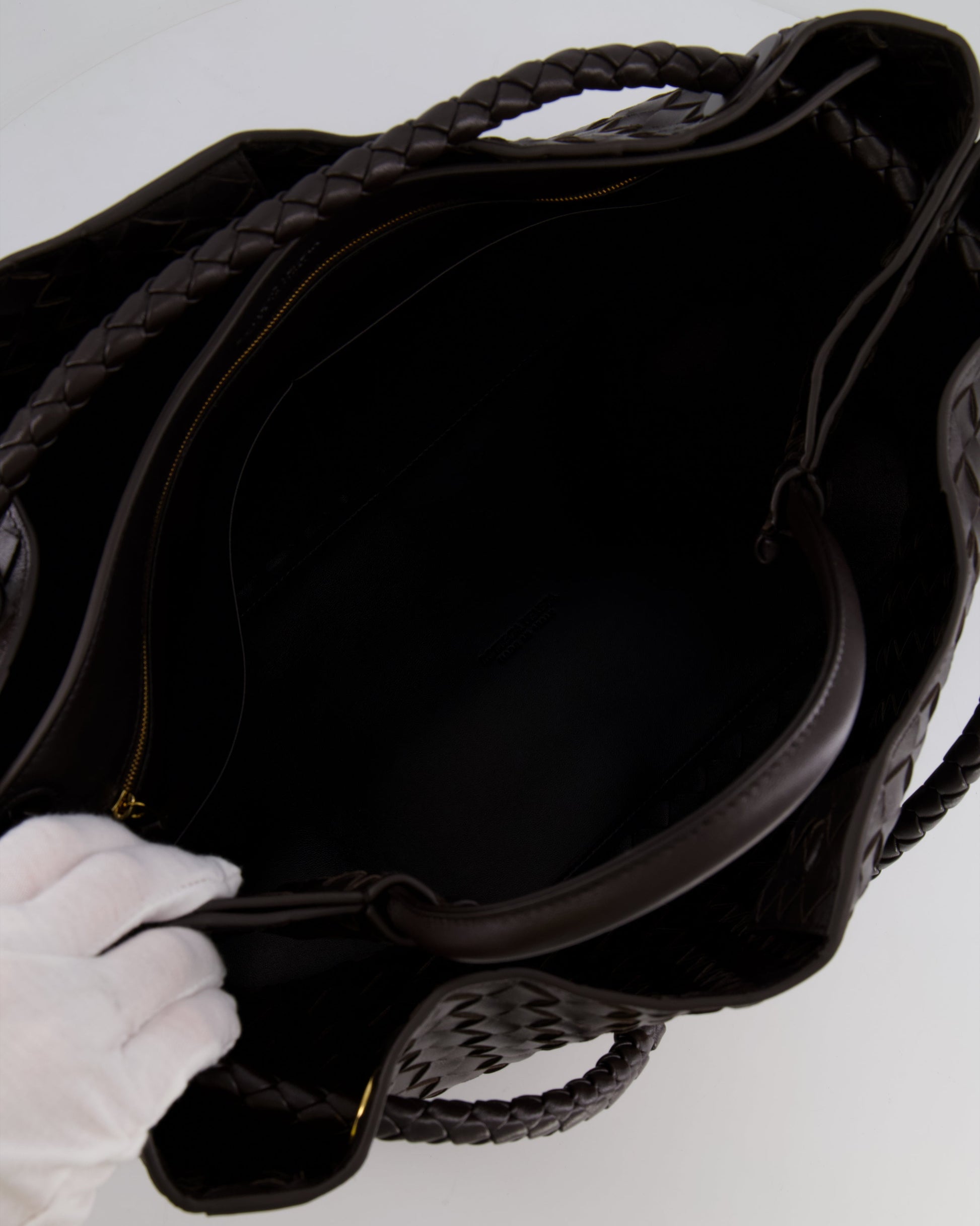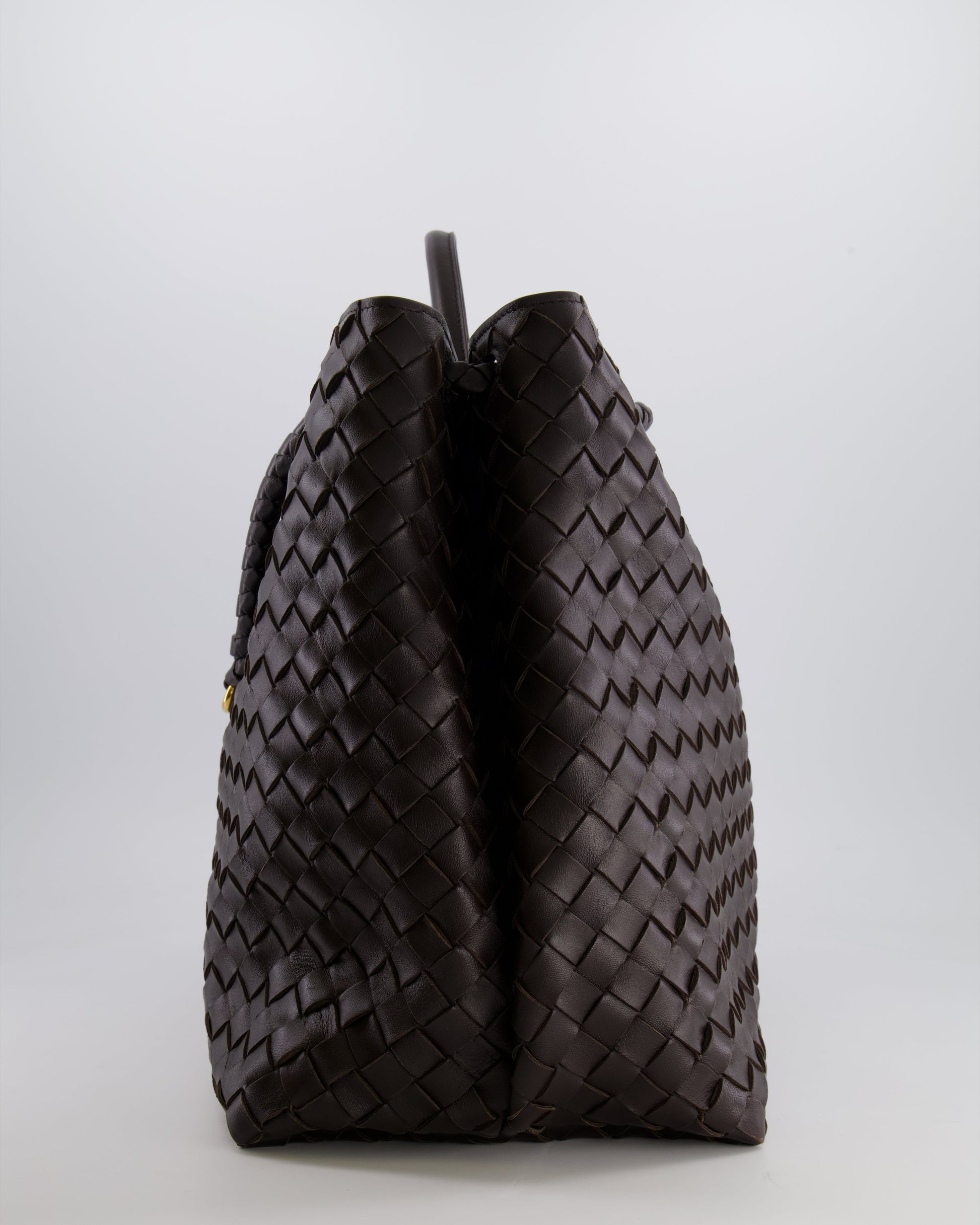Bottega Veneta Fondant Andiamo Large Intrecciato Leather Top Handle Bag with Sliding Cross-Body and Gold Knot Hardware RRP £6,090