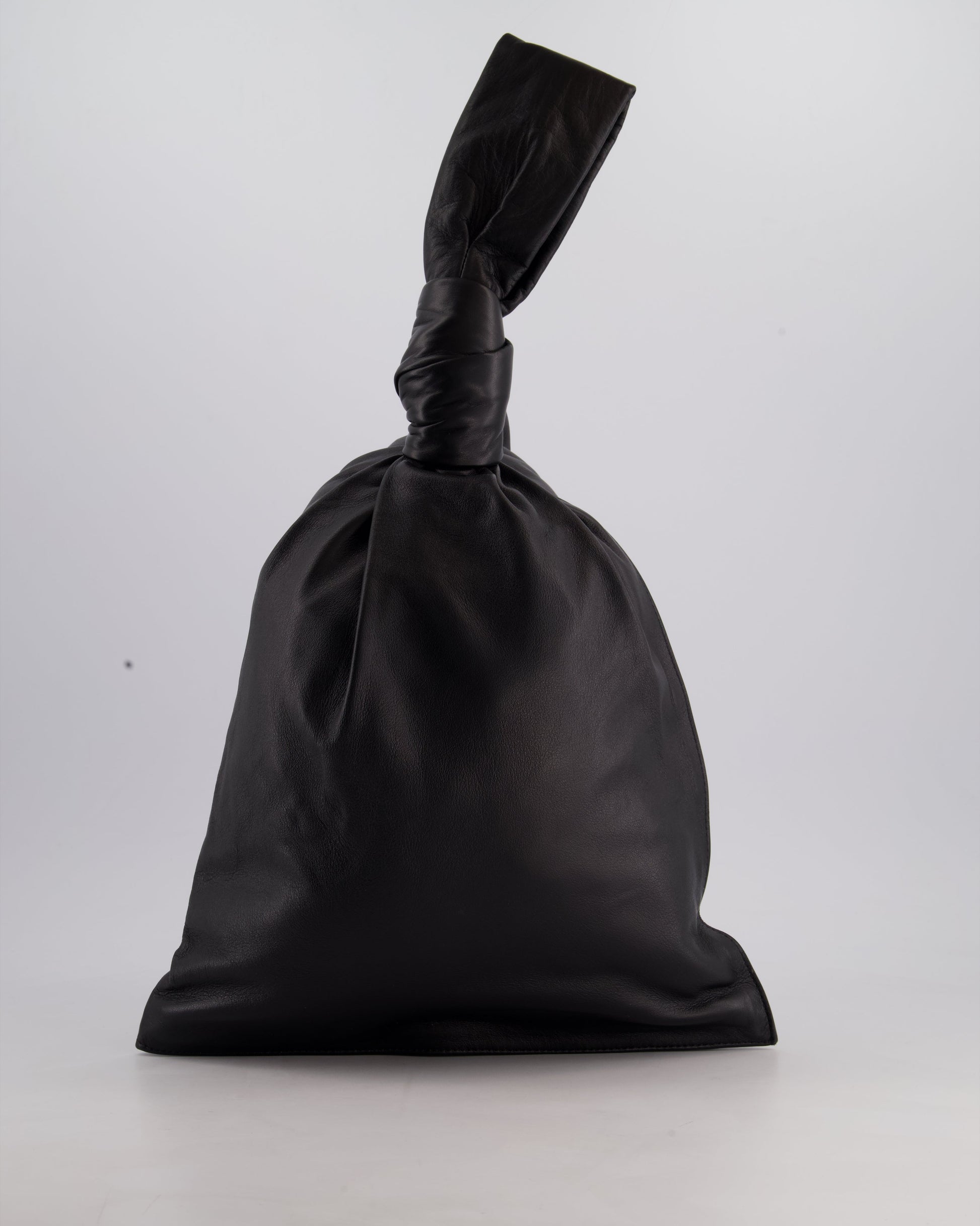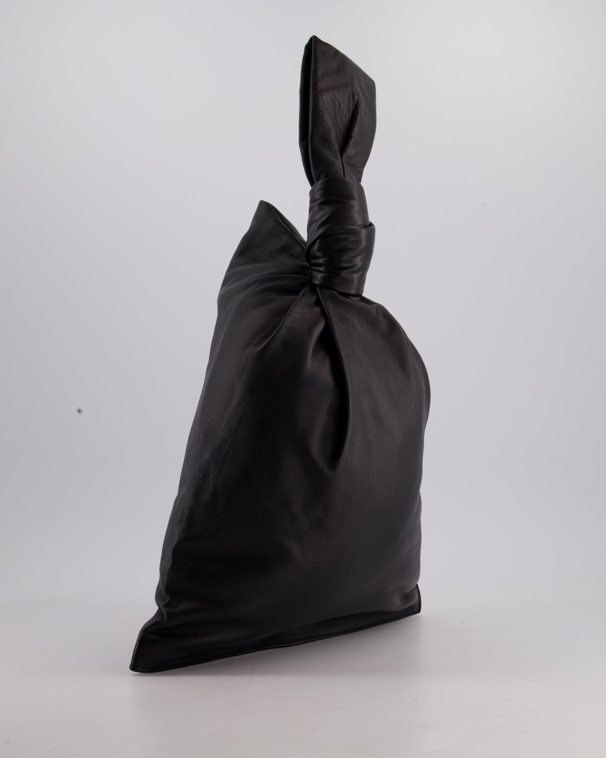 Bottega Veneta Large Black Calfskin Leather Knot Clutch Bag