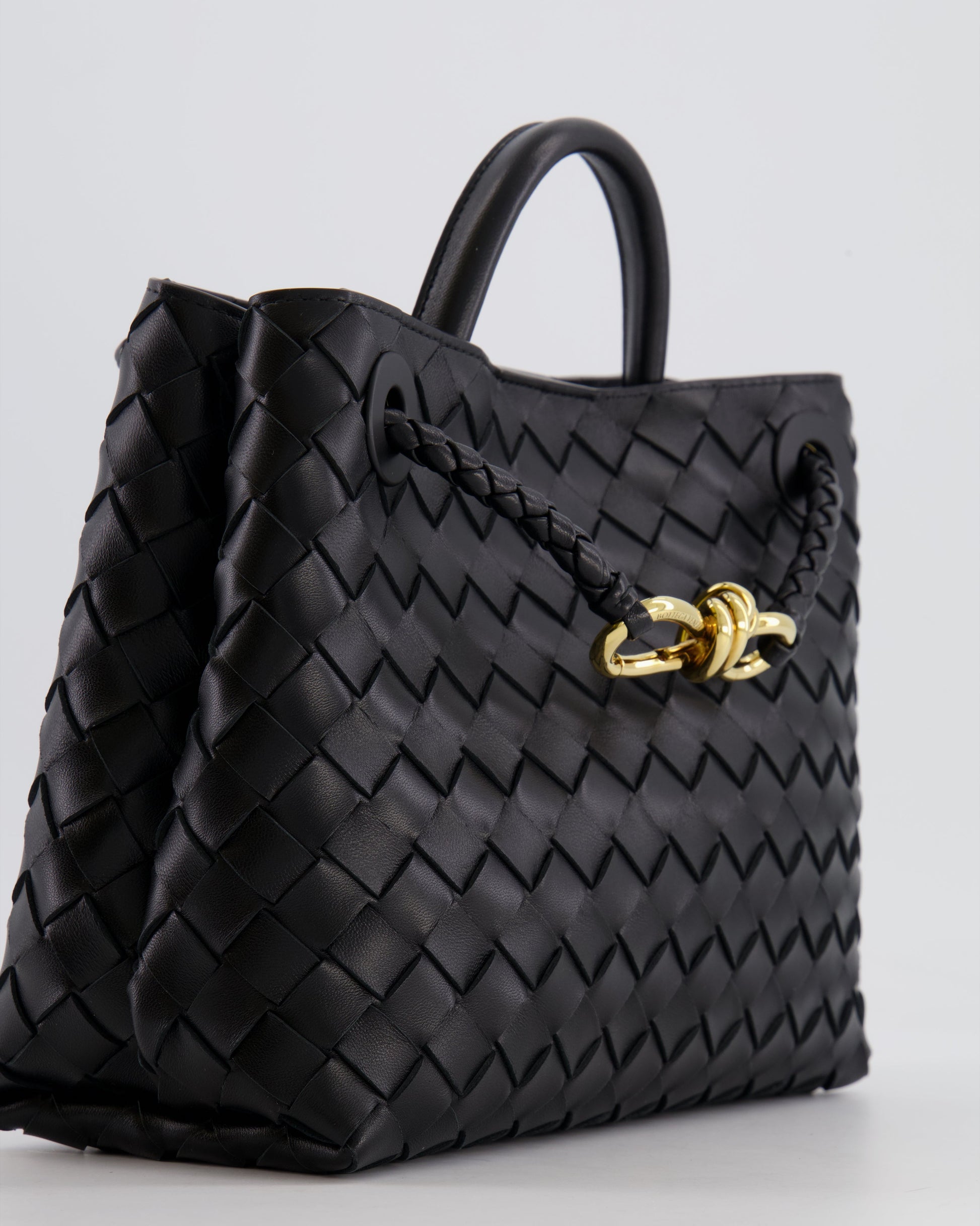 Bottega Veneta Small Andiamo Bag in Black Intrecciato Leather with Gold Hardware RRP £3,460