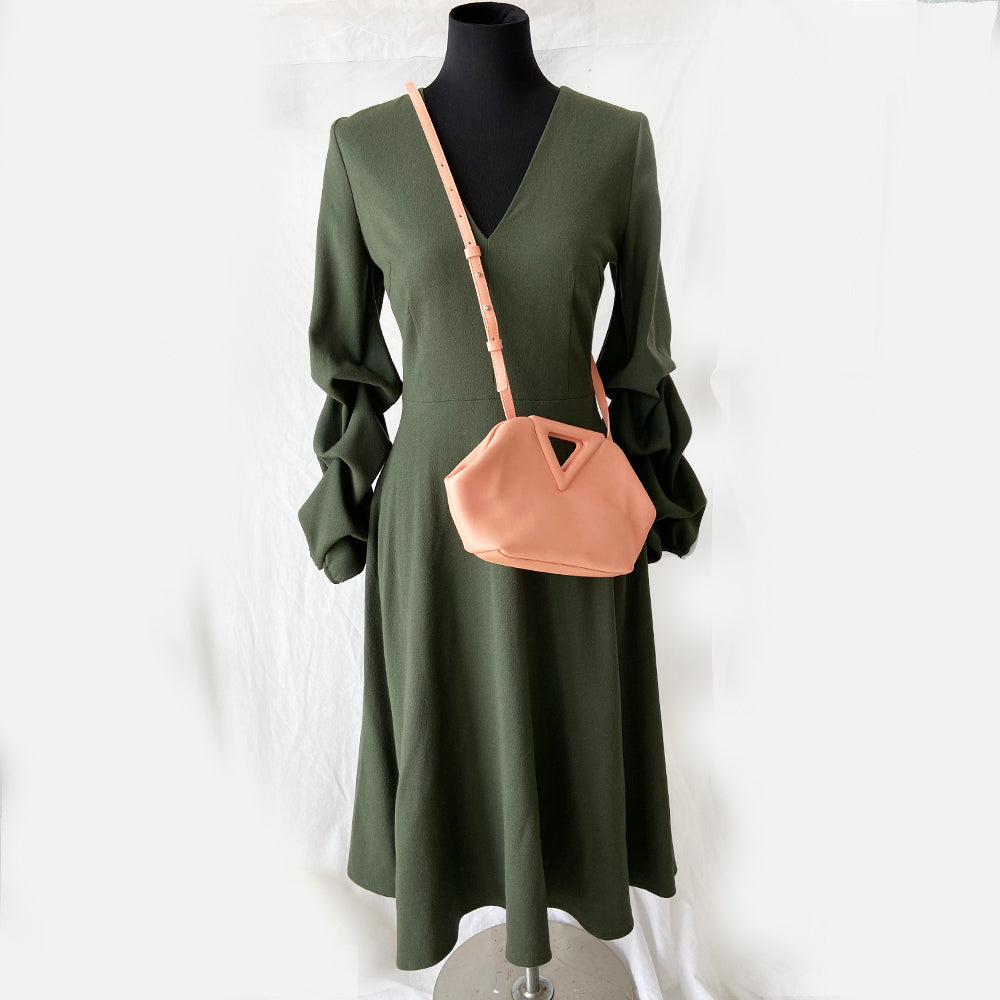 Description : Bottega Veneta small Point top-handle clutch bag, crafted from pink leather can b worn. asa clutch or a crossbody bag. features, triangle cut-out top handle, magnetic frame closure and detachable shoulder strap