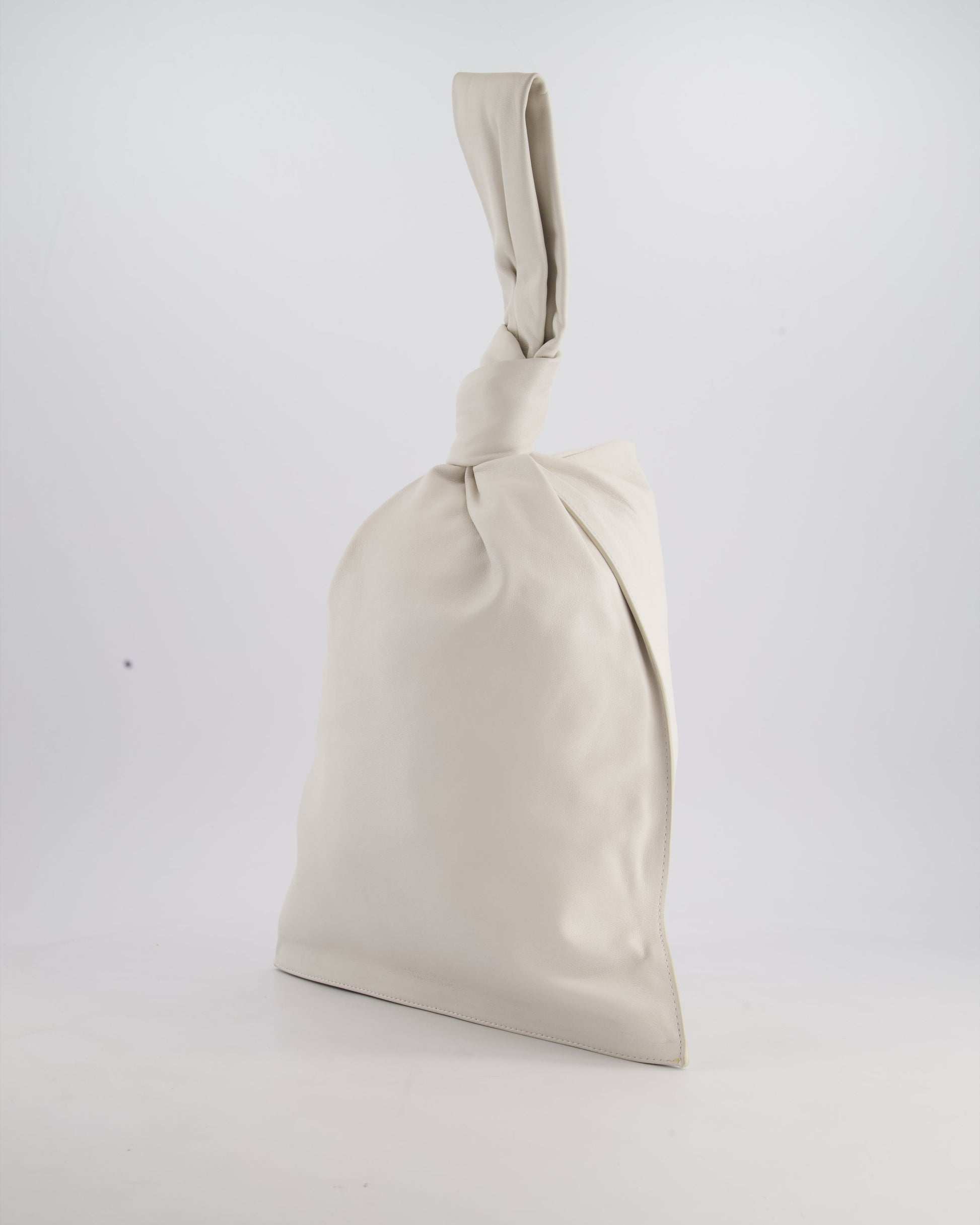 Bottega Veneta Large White Calfskin Leather Knot Clutch Bag