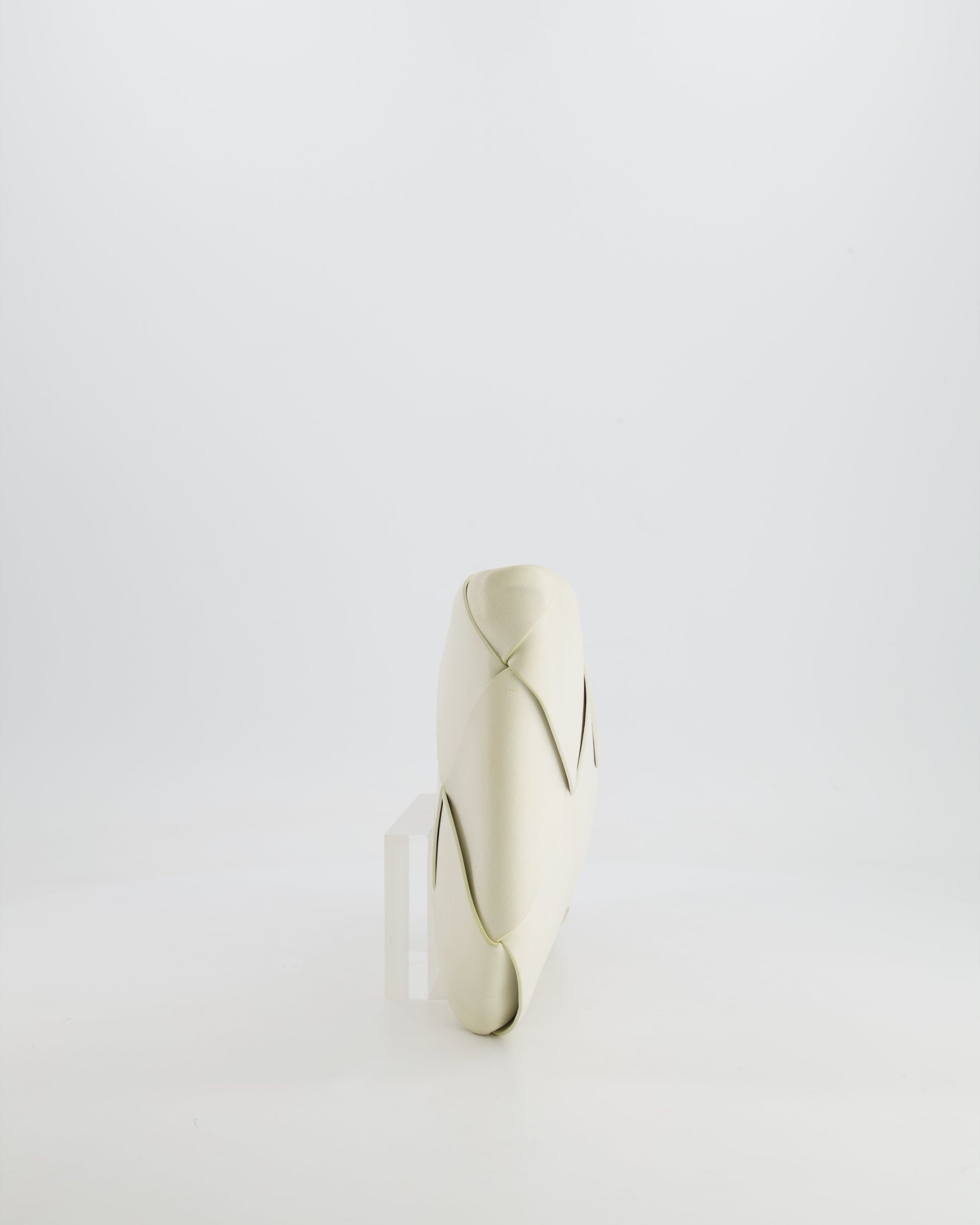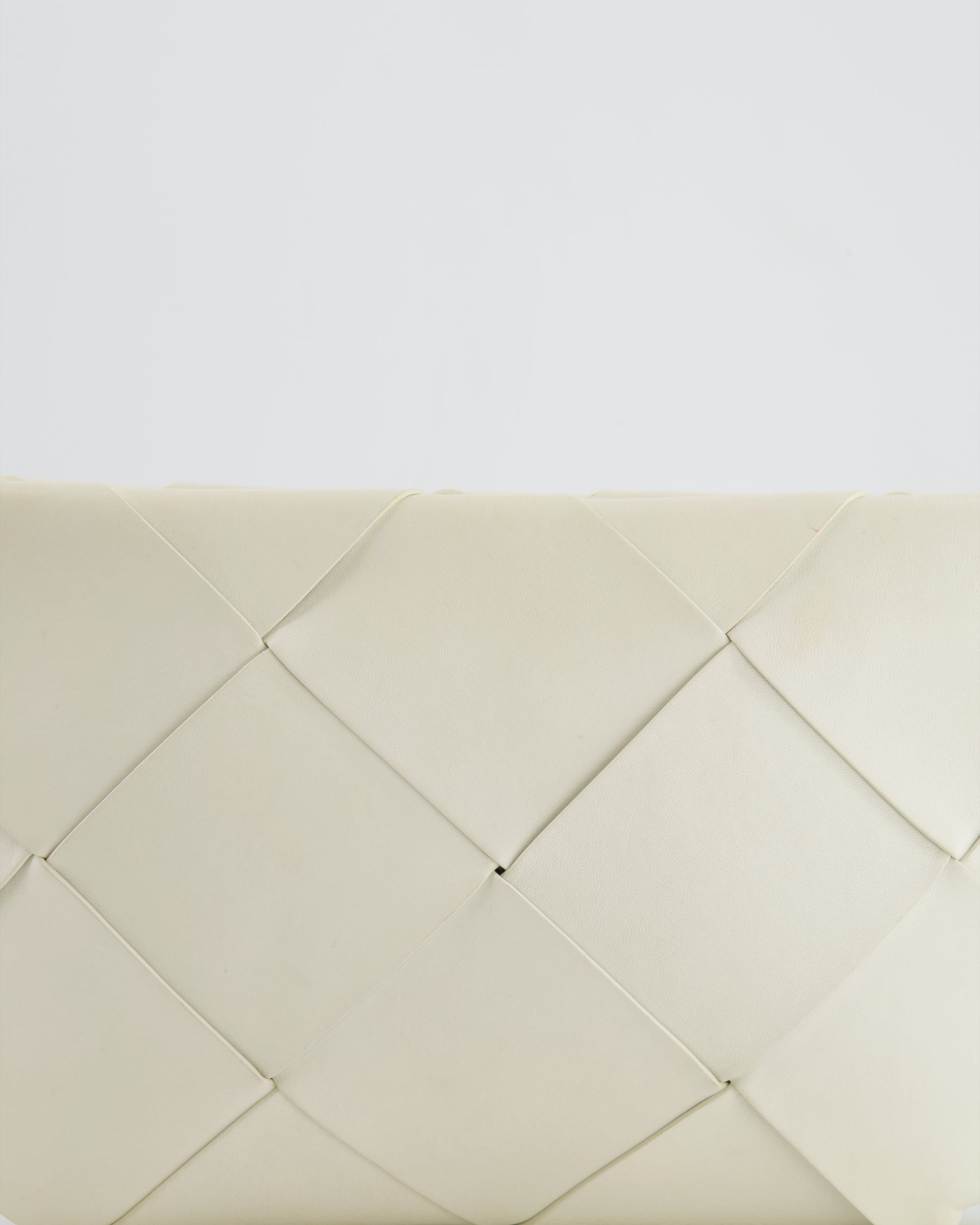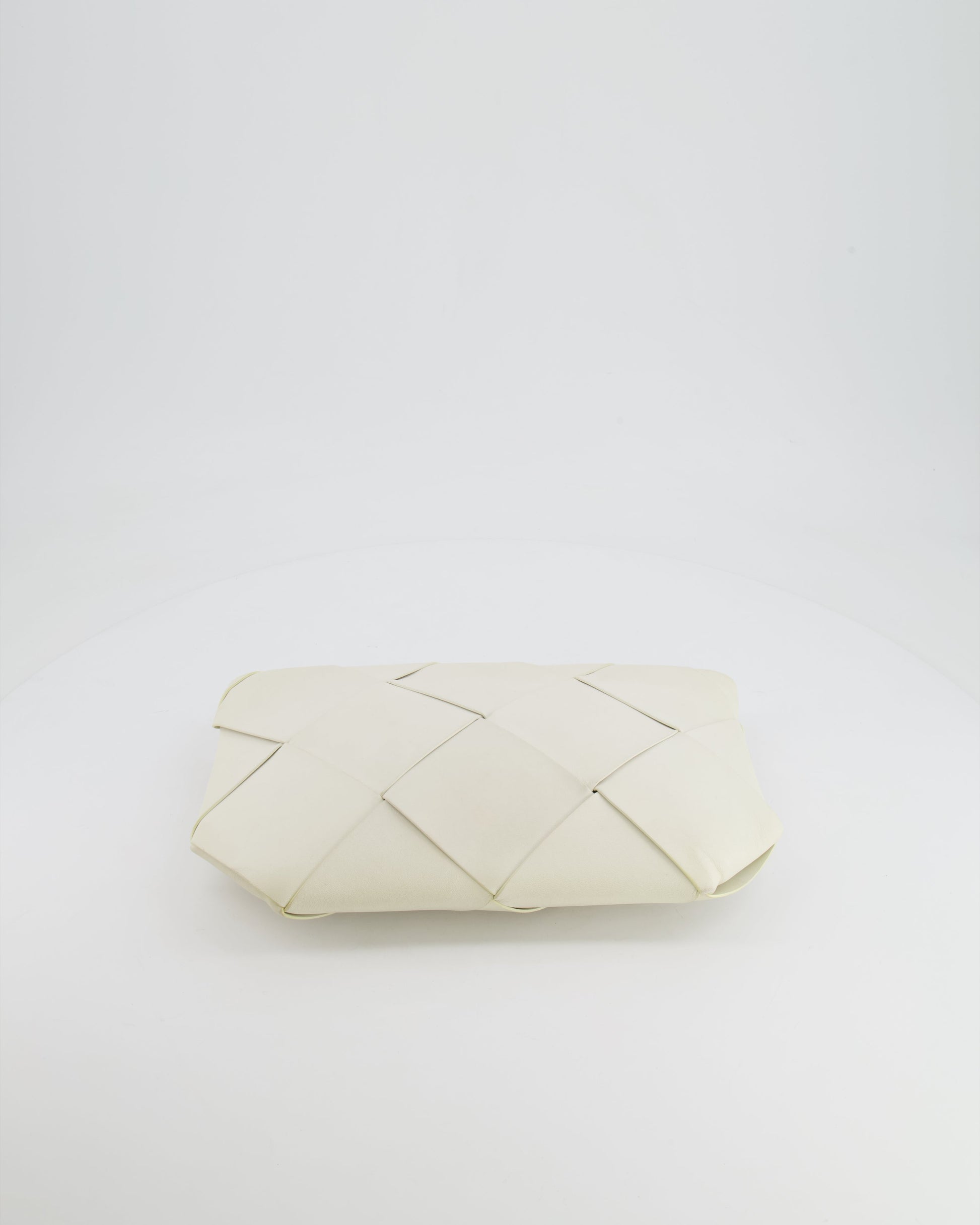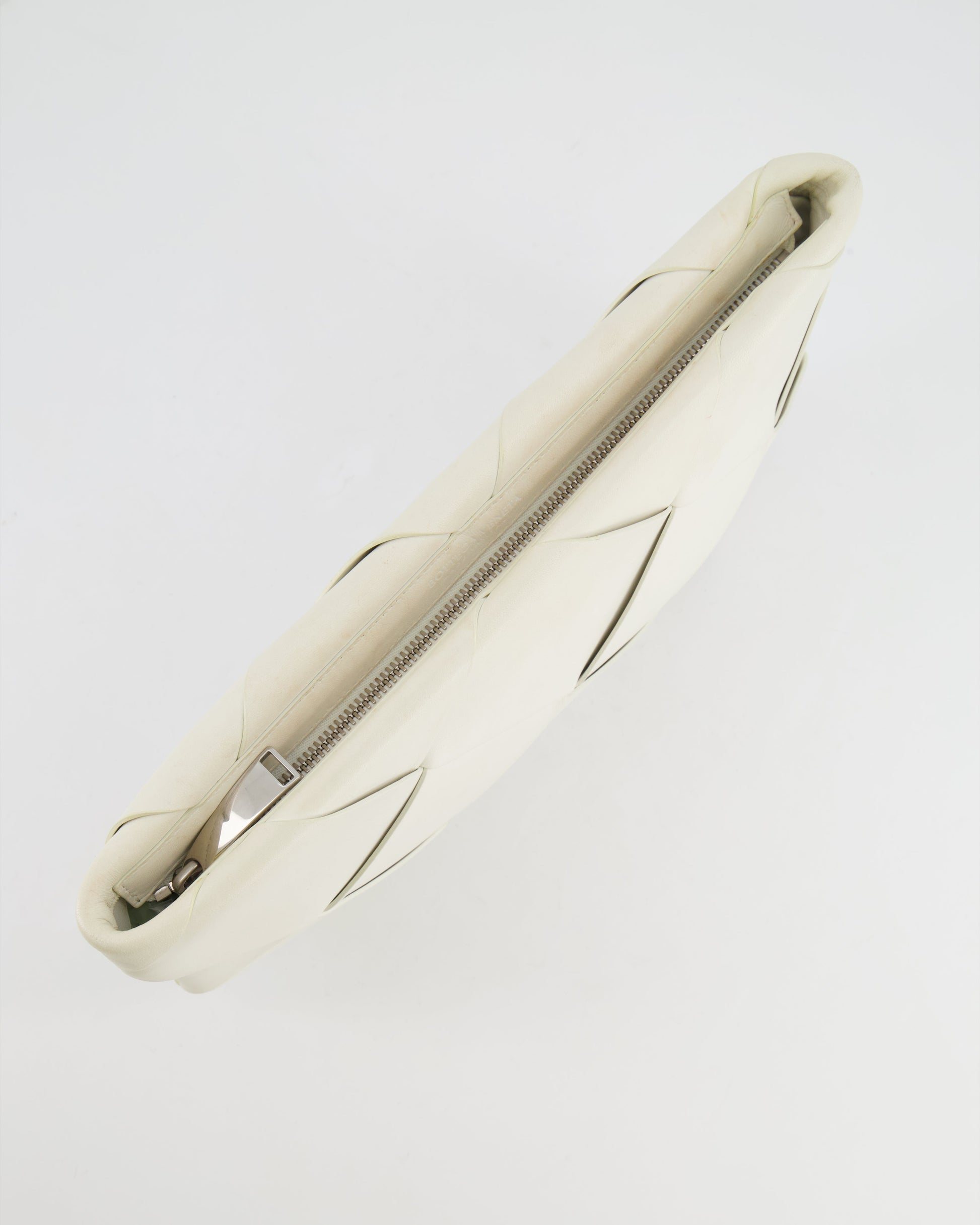 Bottega Veneta White Intrecciato Large Leather Clutch Bag with Silver Hardware