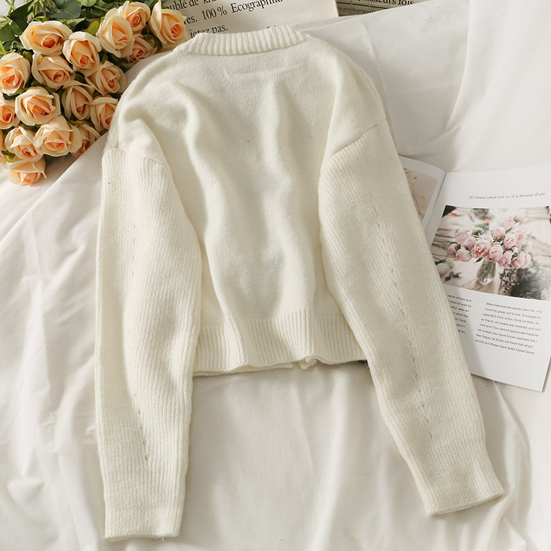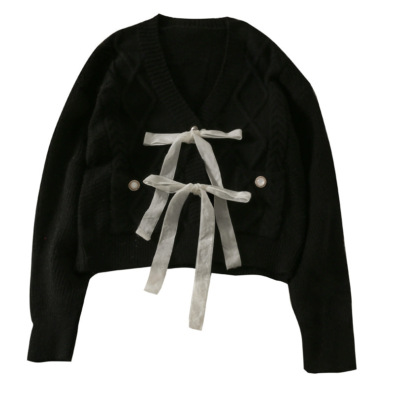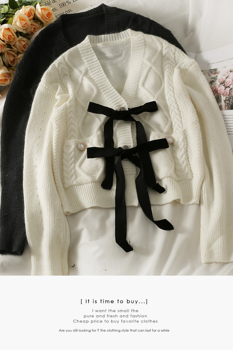 Bow tie short single breasted Plaid cardigan sweater 1780