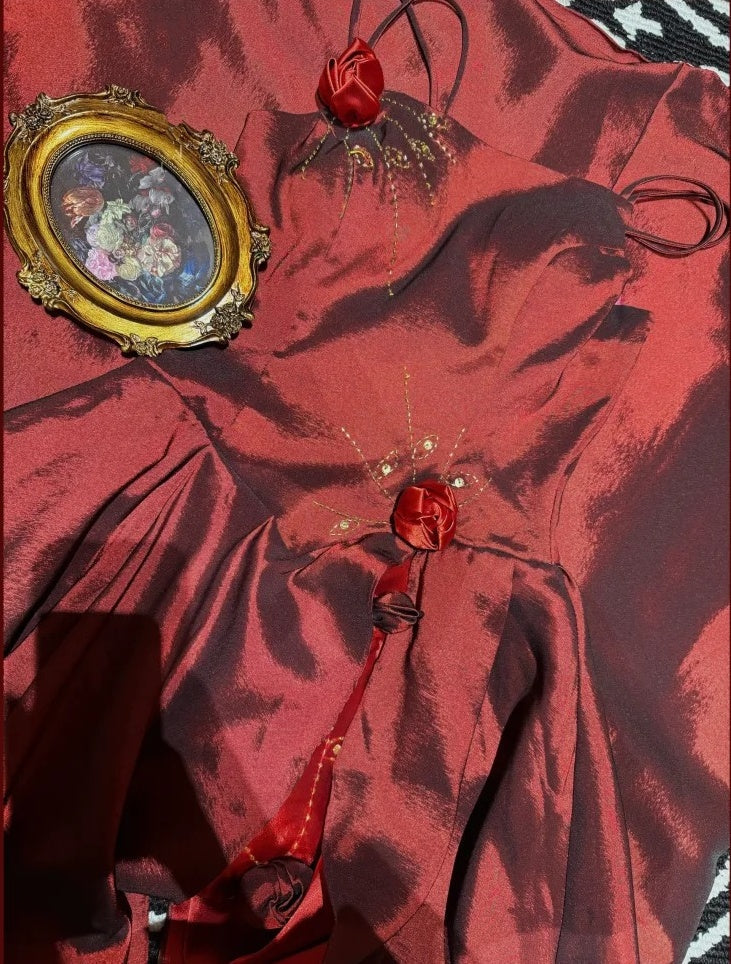 Burgundy Exquisite Beaded Long Floral Satin Tulle Ball Gown Evening Gown Graduation Gown gh4255