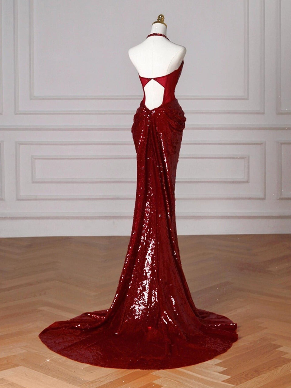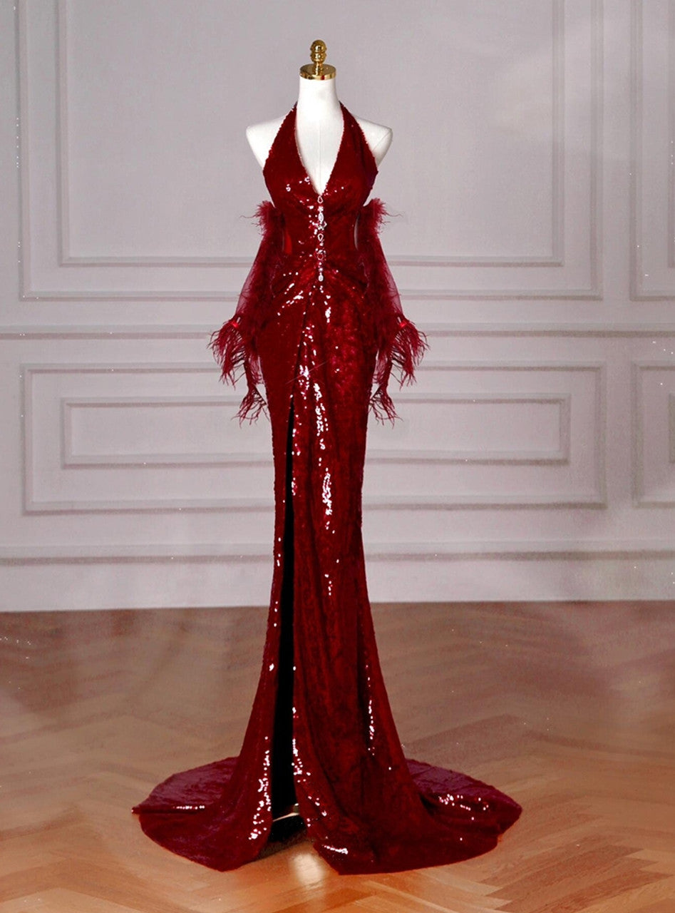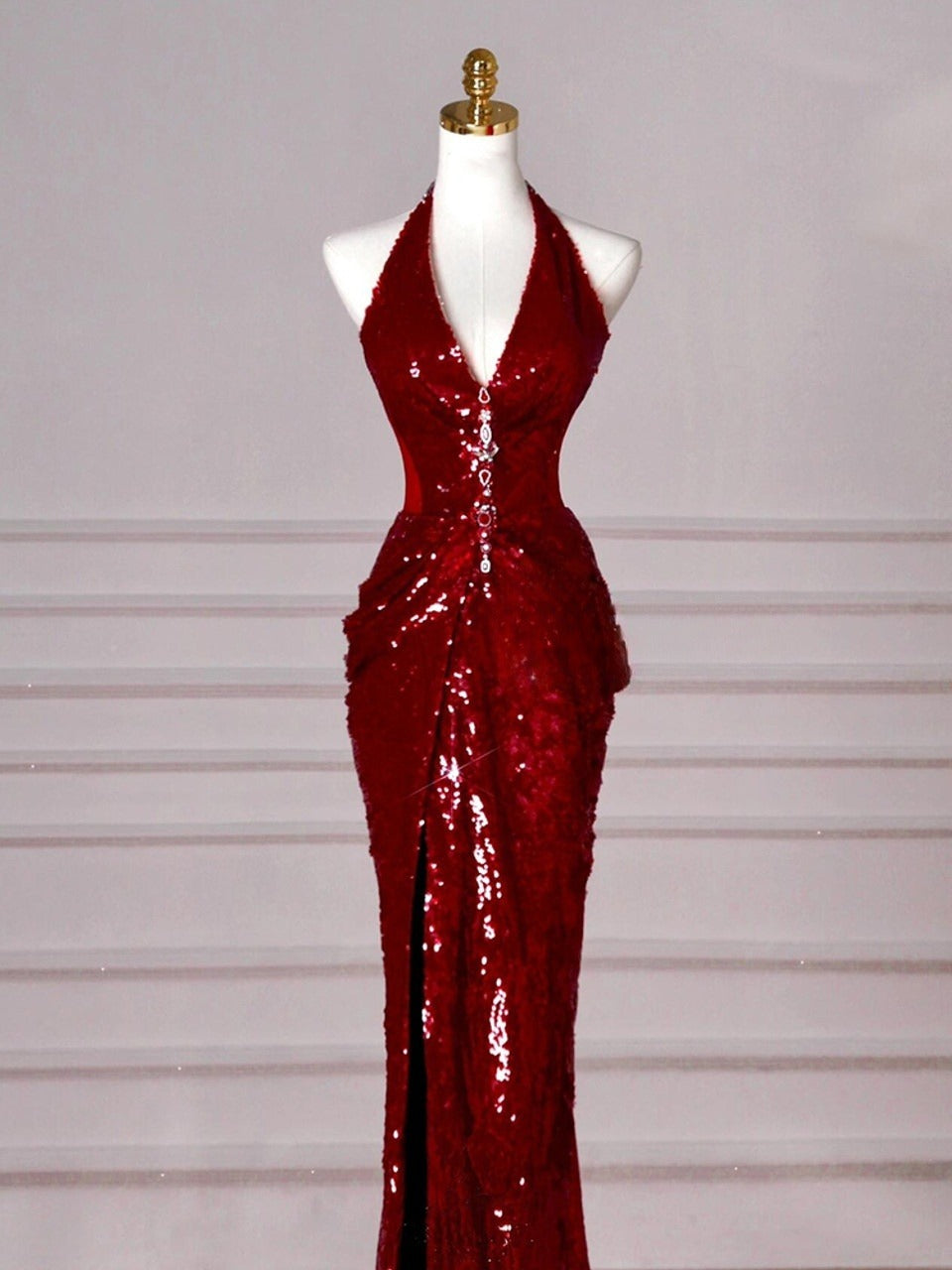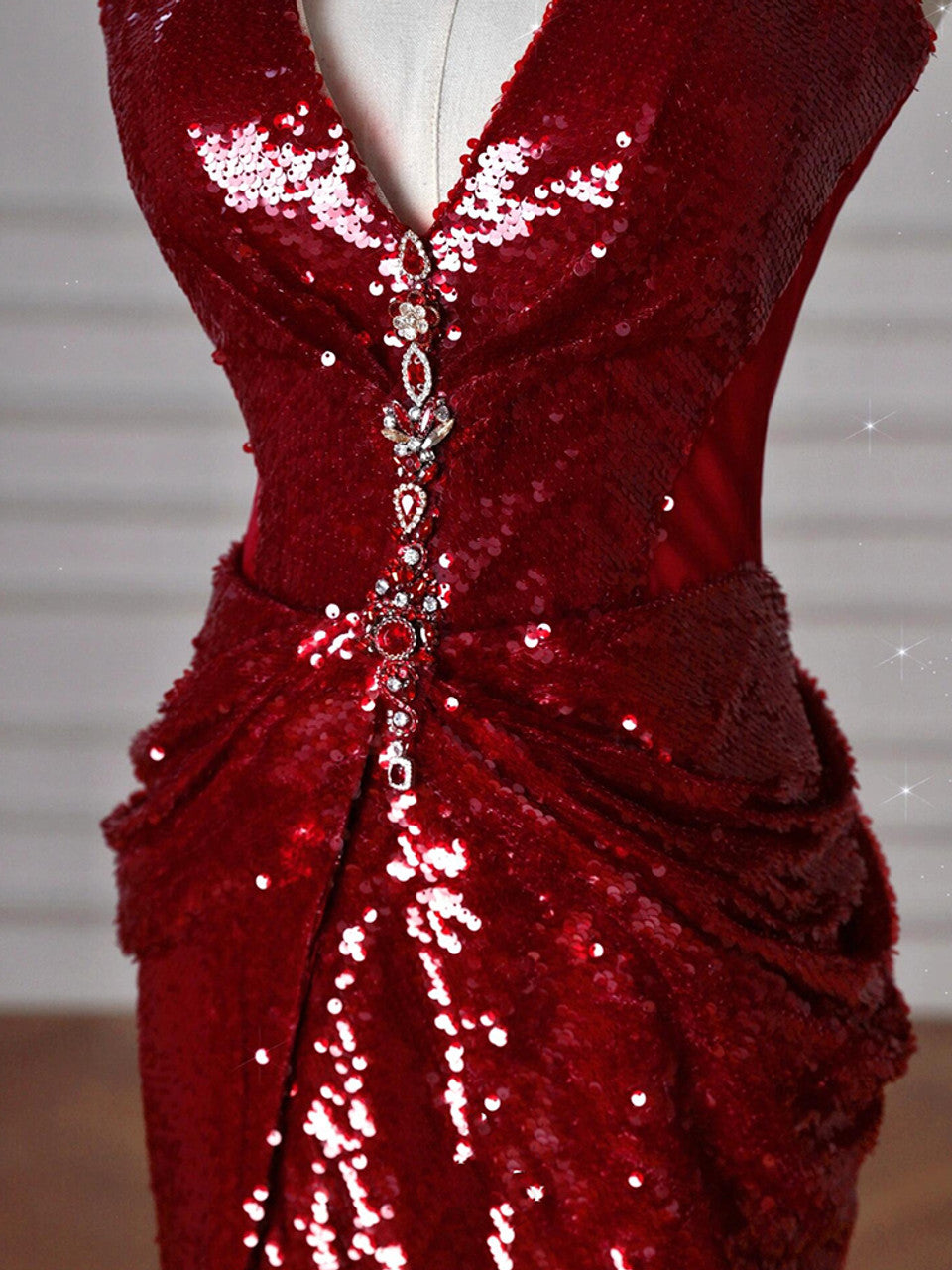 Burgundy Mermaid V-neck Sequins Long Prom Dress,Formal Prom Dress ED01203