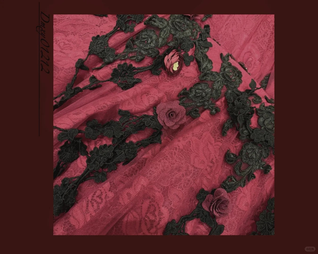 Burgundy Mysterious Red Rose Gorgeous Exquisite Lace Tulle Long Floor-Length Trailing Ball Gown Evening Gown gh4253