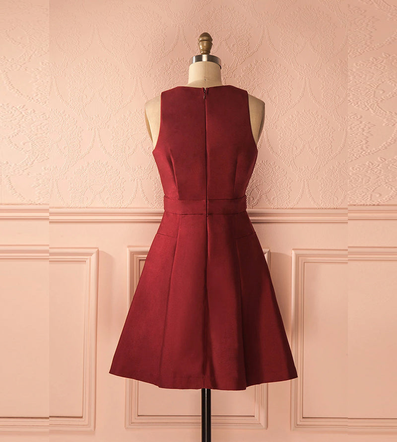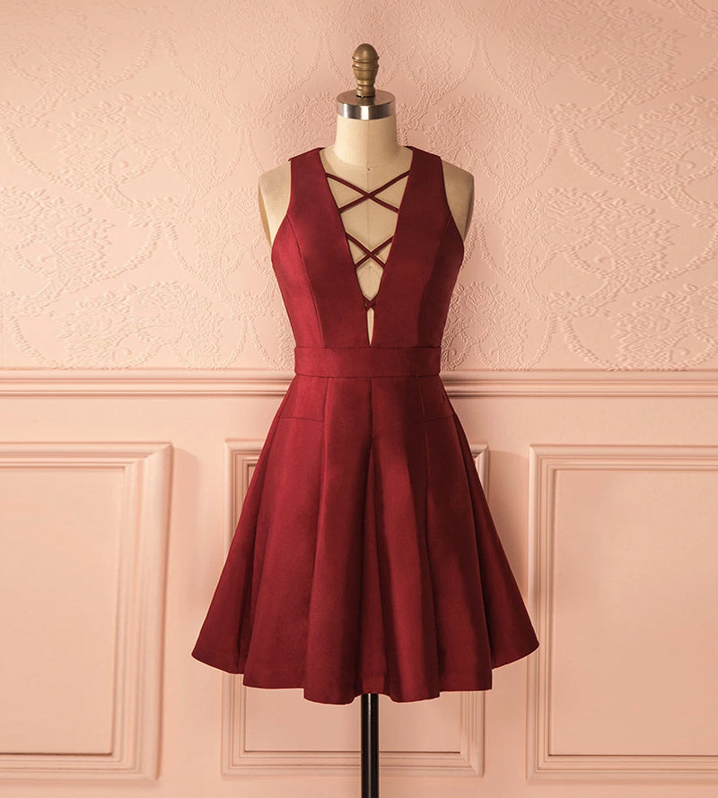 Burgundy satin short prom dress