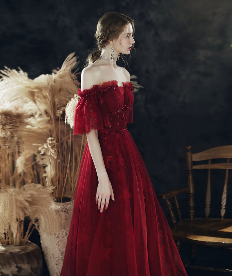 Burgundy sequins long prom dress 8340