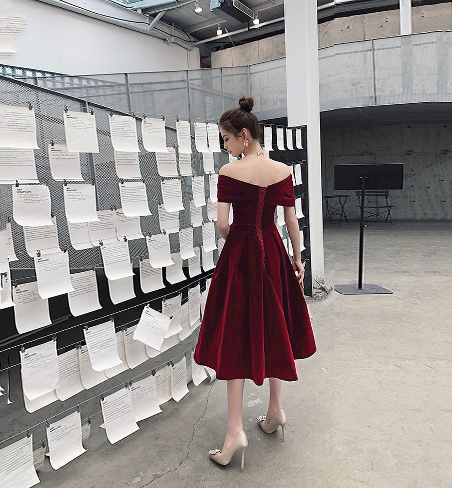Burgundy velvet short prom dress homecoming dress