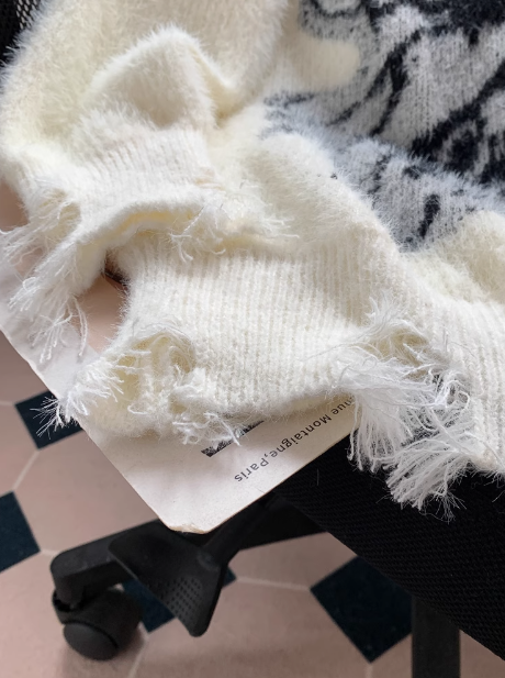 Butterfly Print Distressed V-Neck Pullover Sweater ED0220