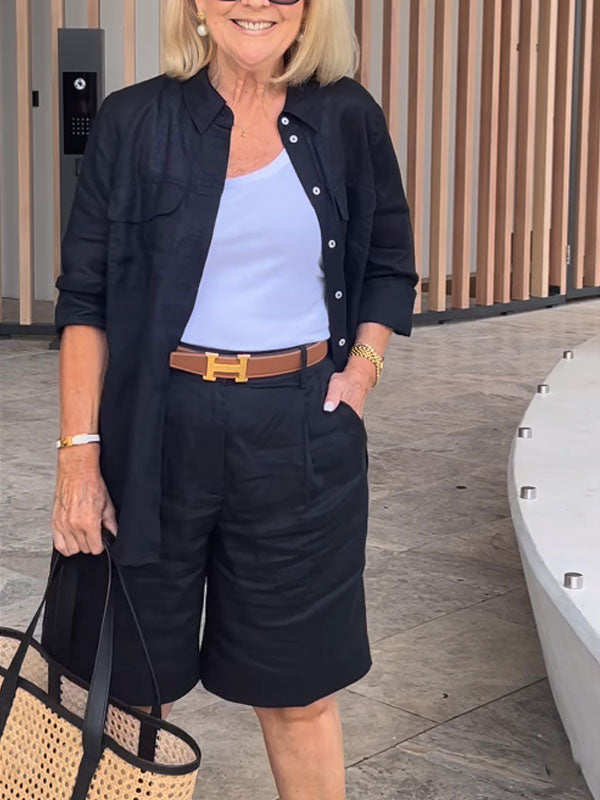 Casual Cotton Linen Shirt Shorts Women's Sets