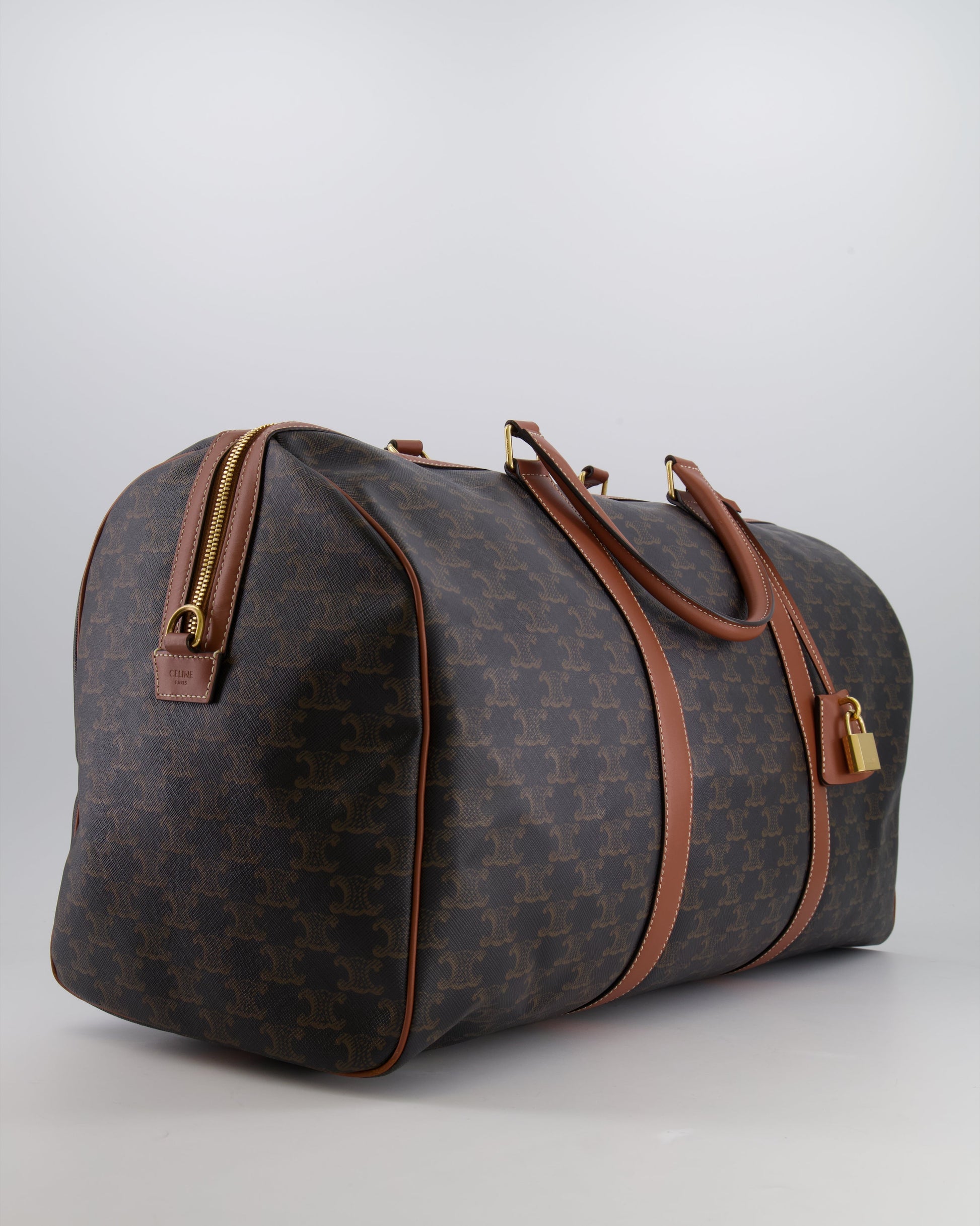 Céline Brown Triomphe Large Travel Bag in Canvas and Calfskin with Gold Hardware RRP £1,950