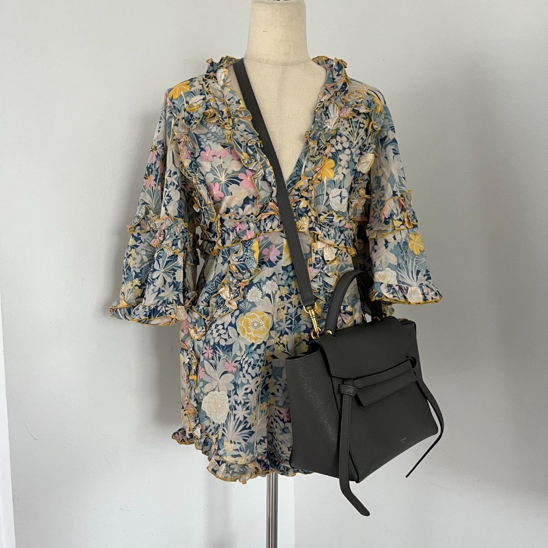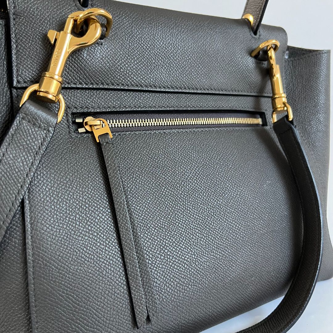 Celine Micro Grey Leather Belt Bag with gold-tone hardware comes with a detachable crossbody strap