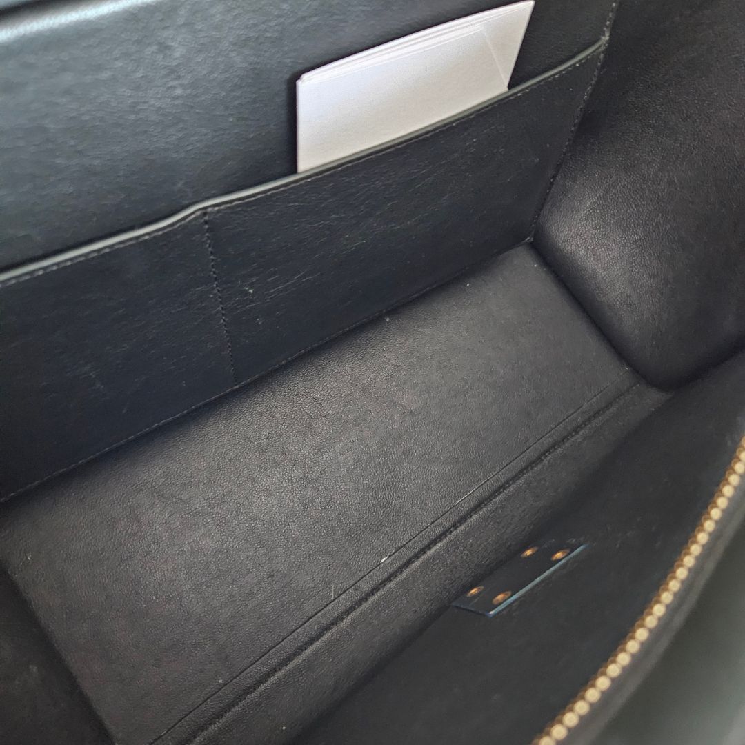 Celine Navy Beige/Green/Black Leather Medium Trapeze Top Handle bag comes with removable strap , features gold hardware