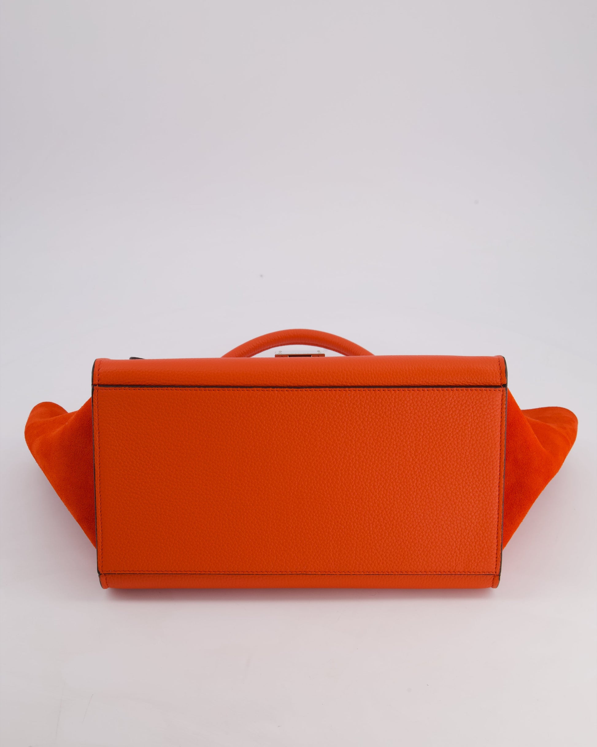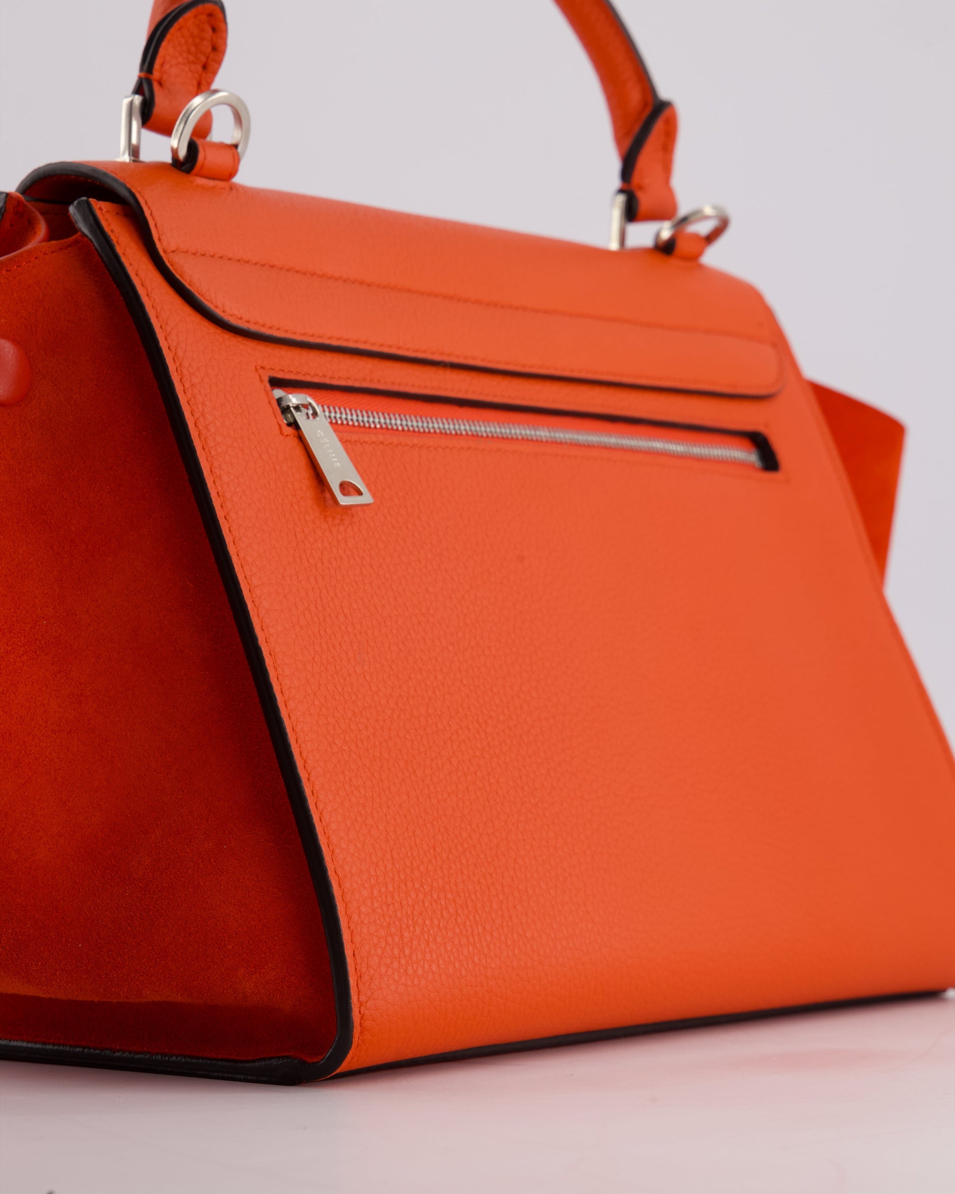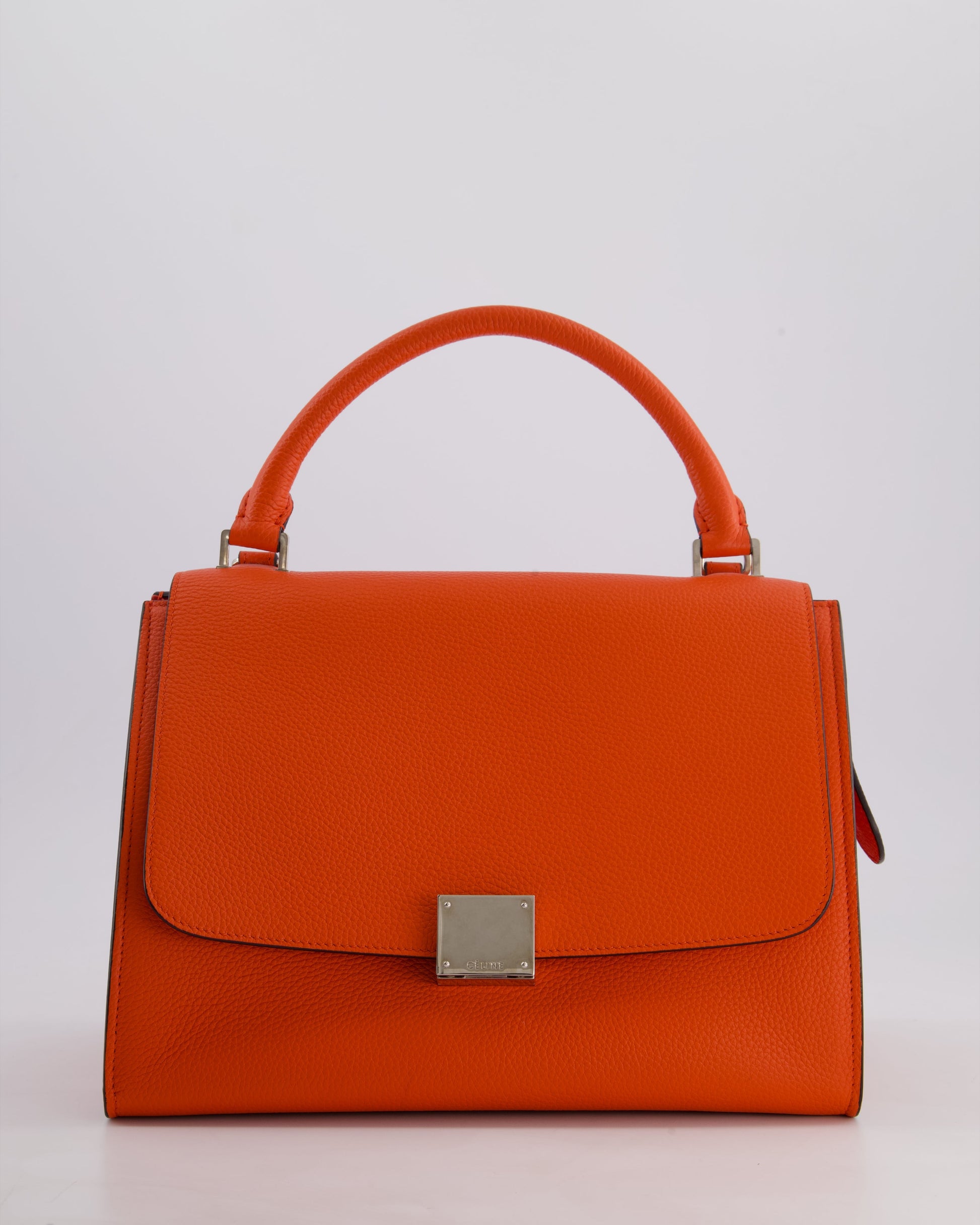 Celine Orange Calfskin & Suede Medium Trapeze Bag with Silver Hardware