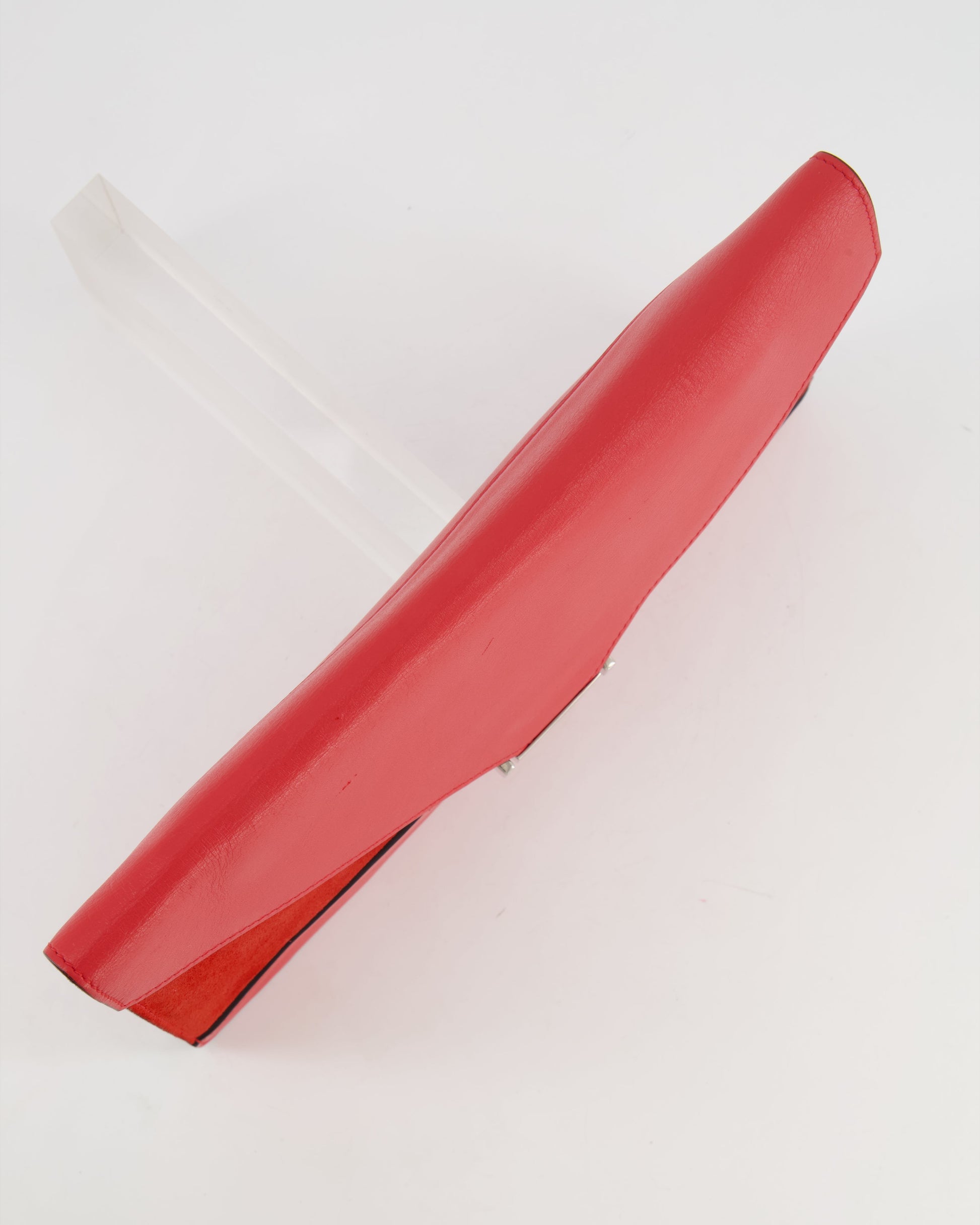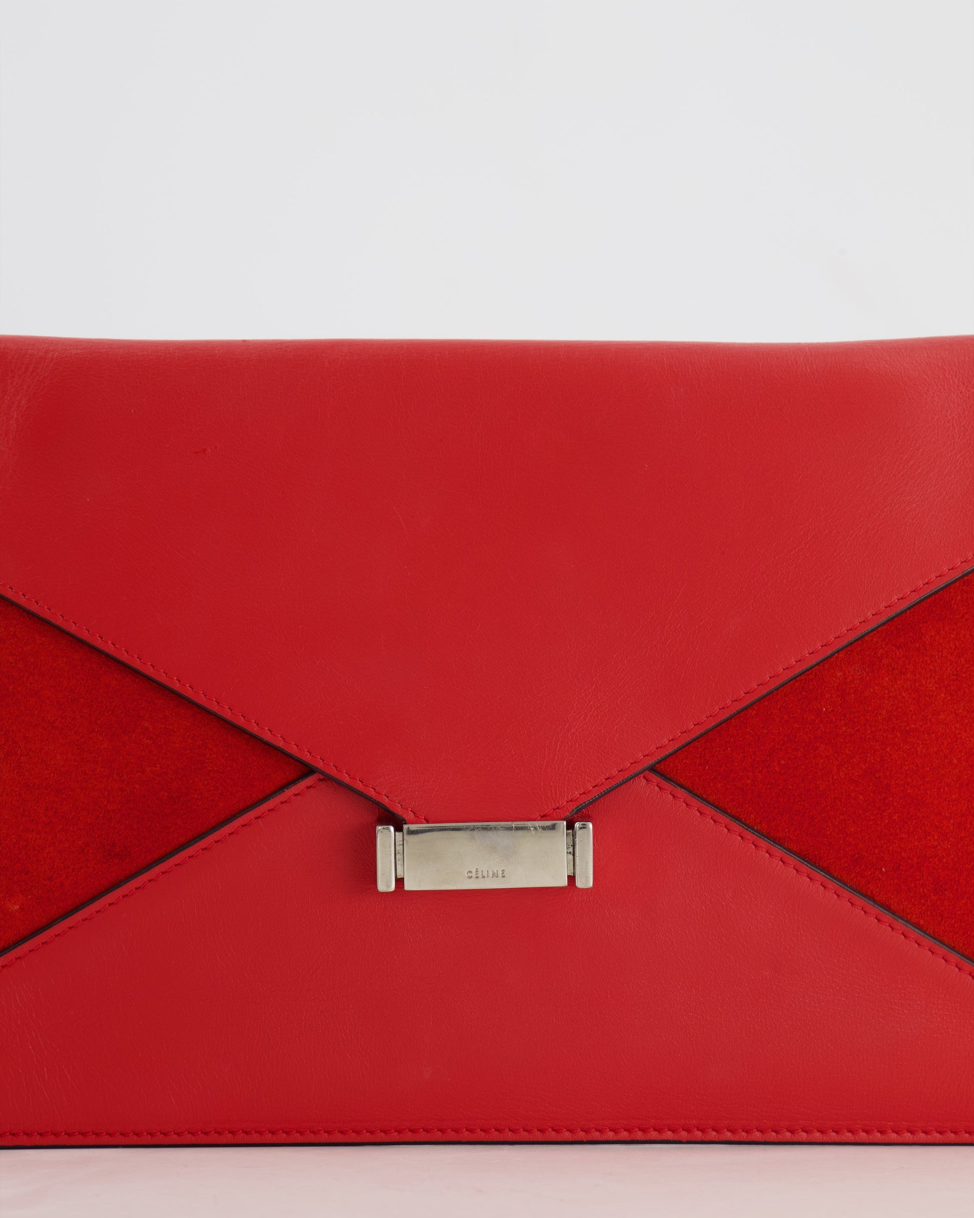 Céline Red Leather and Suede Envelope Pouch Bag with Silver Hardware