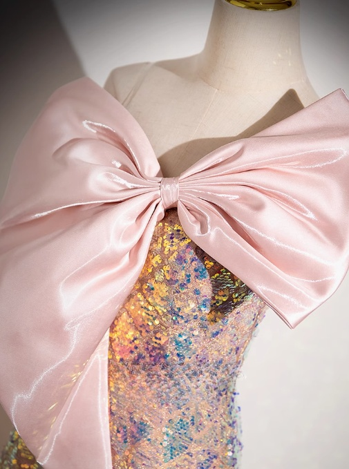 Champagne A-line Strapless Sequined Long Prom Dress, Sweet 16 Dress ED01357