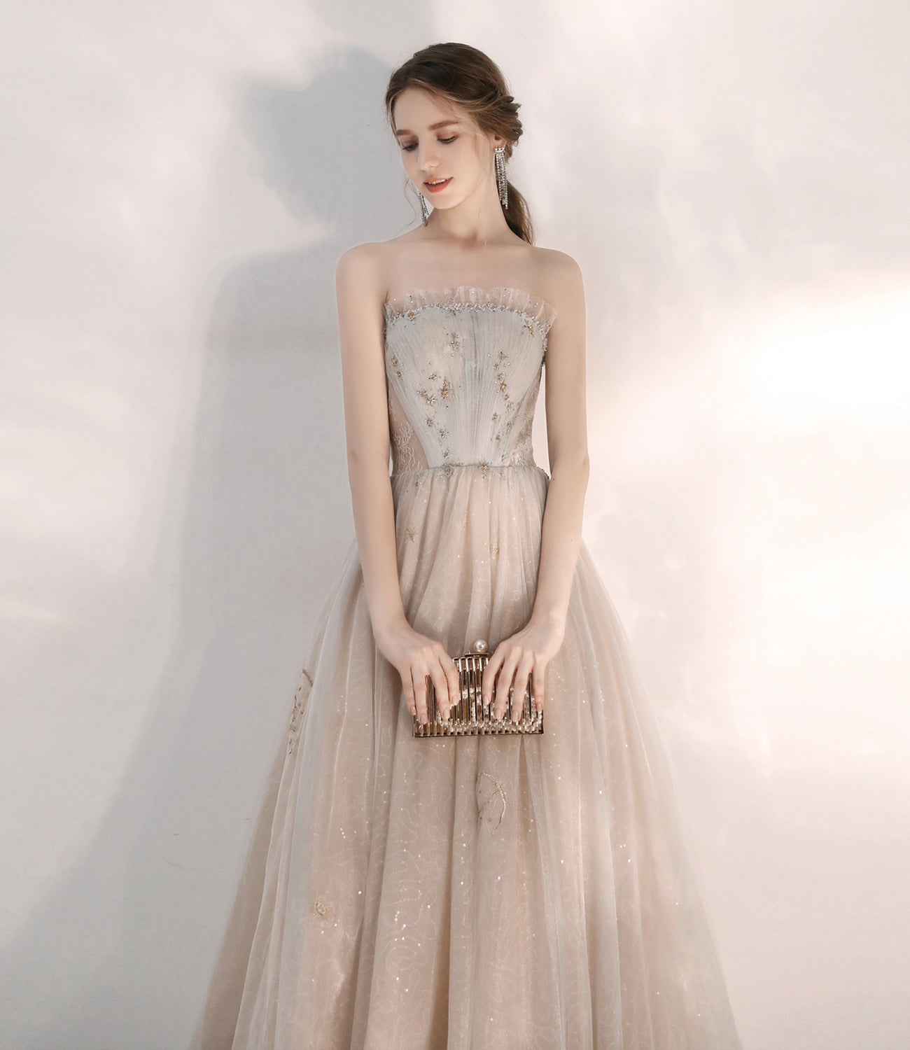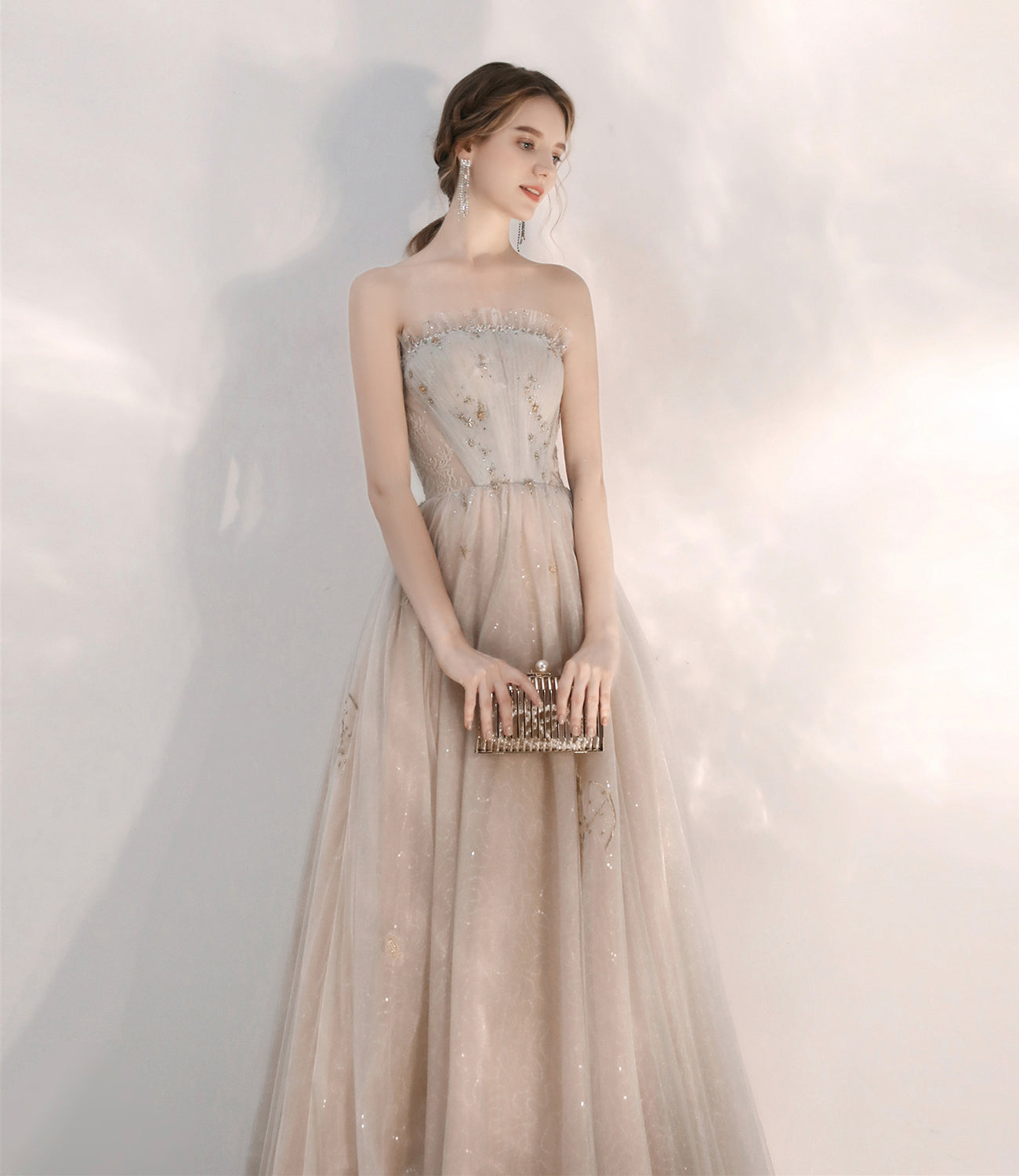 Champagne tulle sequins long prom dress evening dress 10375
