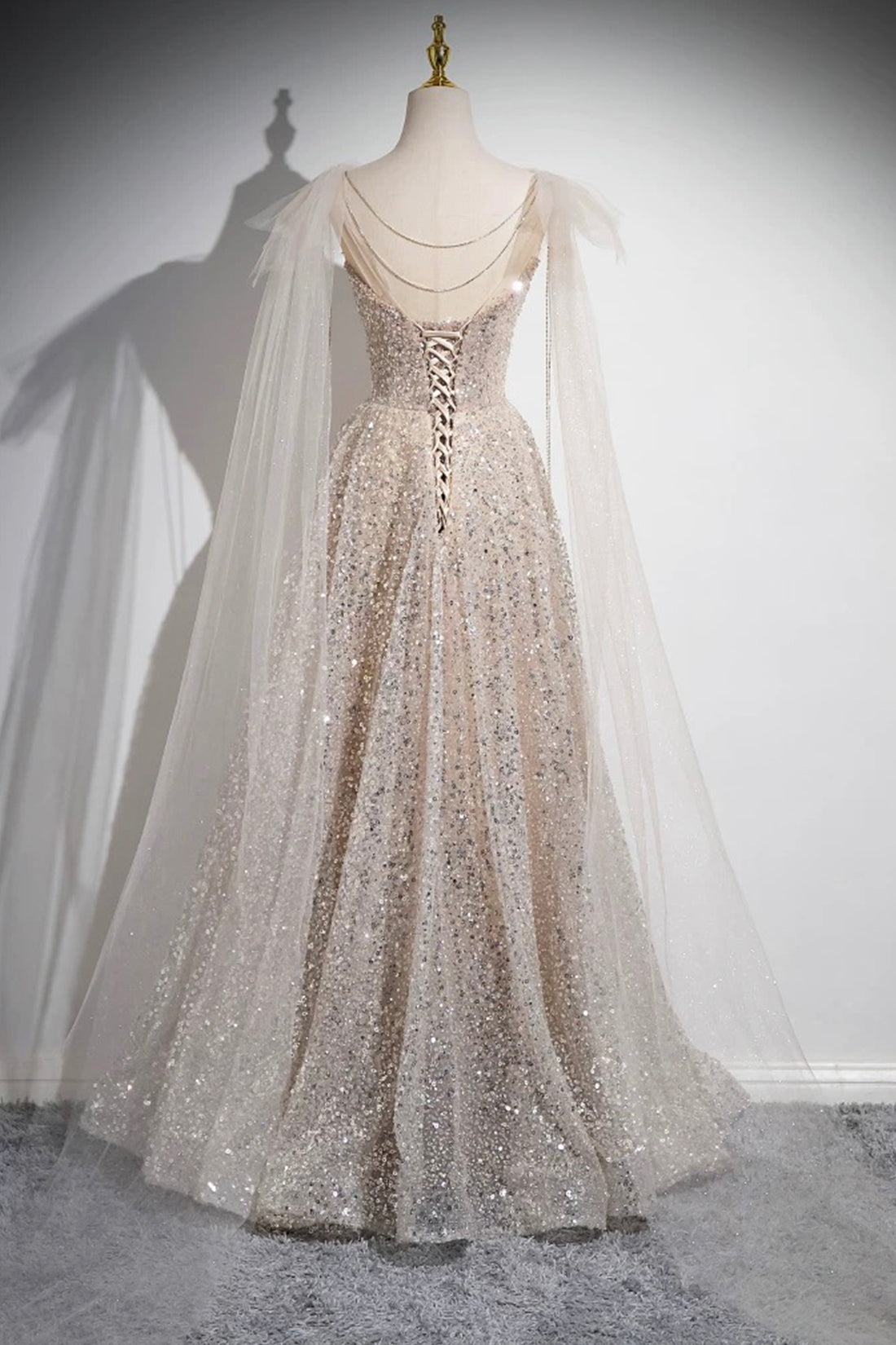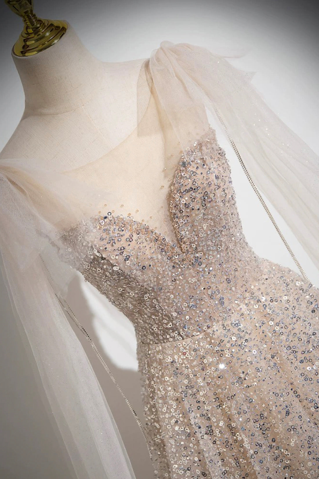 Introducing the Champagne Tulle Sequins Long Prom Dress__ dazzling combination for your special occasions. This exquisite gown is the epitome of red carpet elegance, designed to make you the center of attention at any formal event.