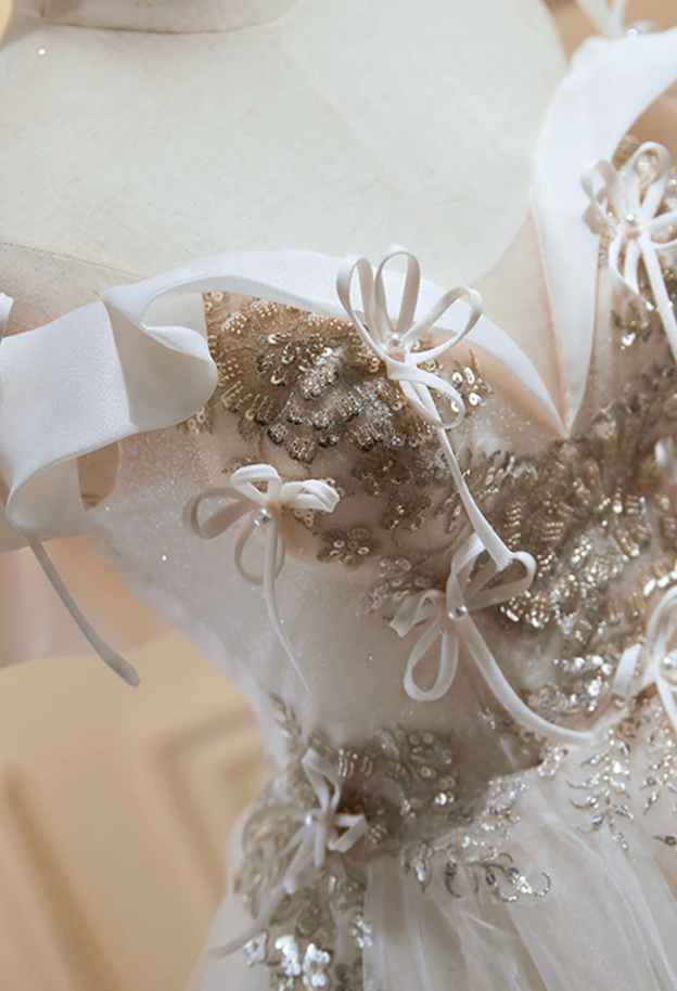 Champagne tulle sequins short prom dress homecoming dress fg960