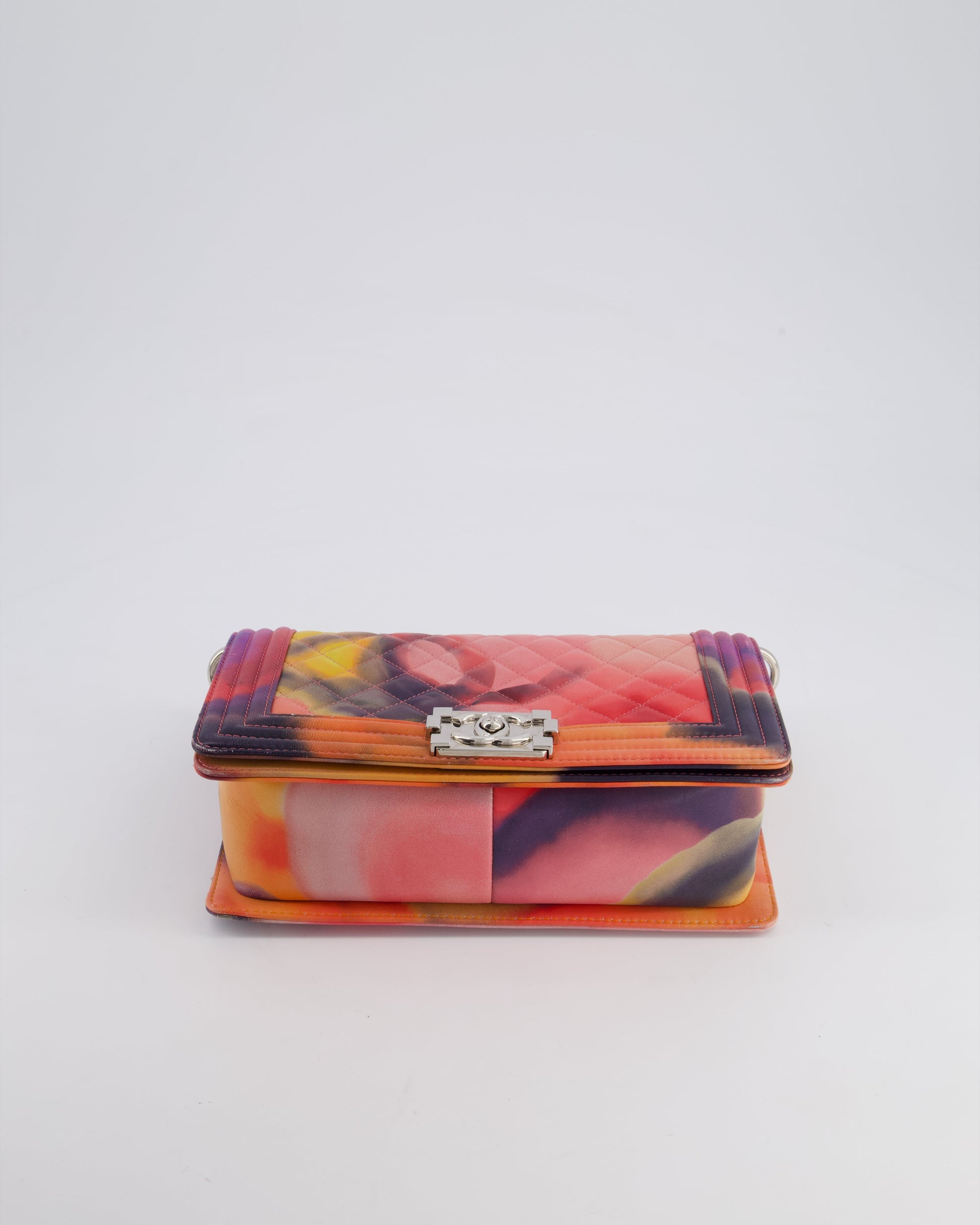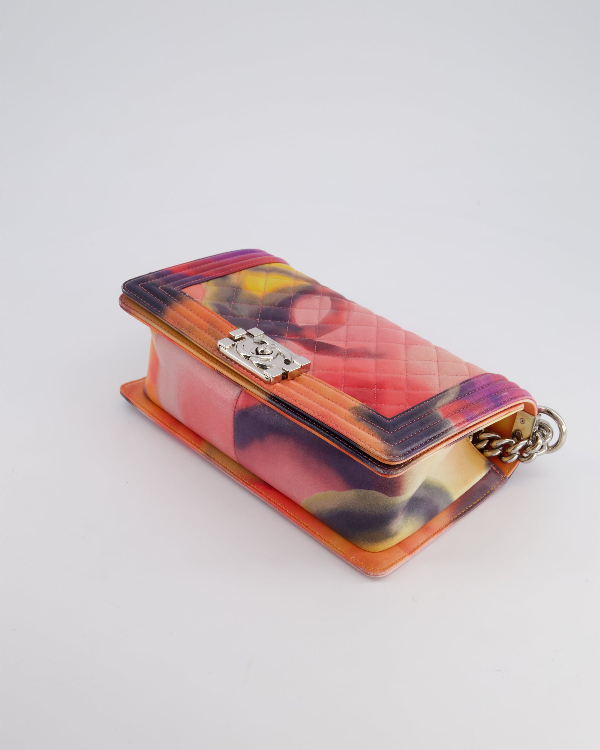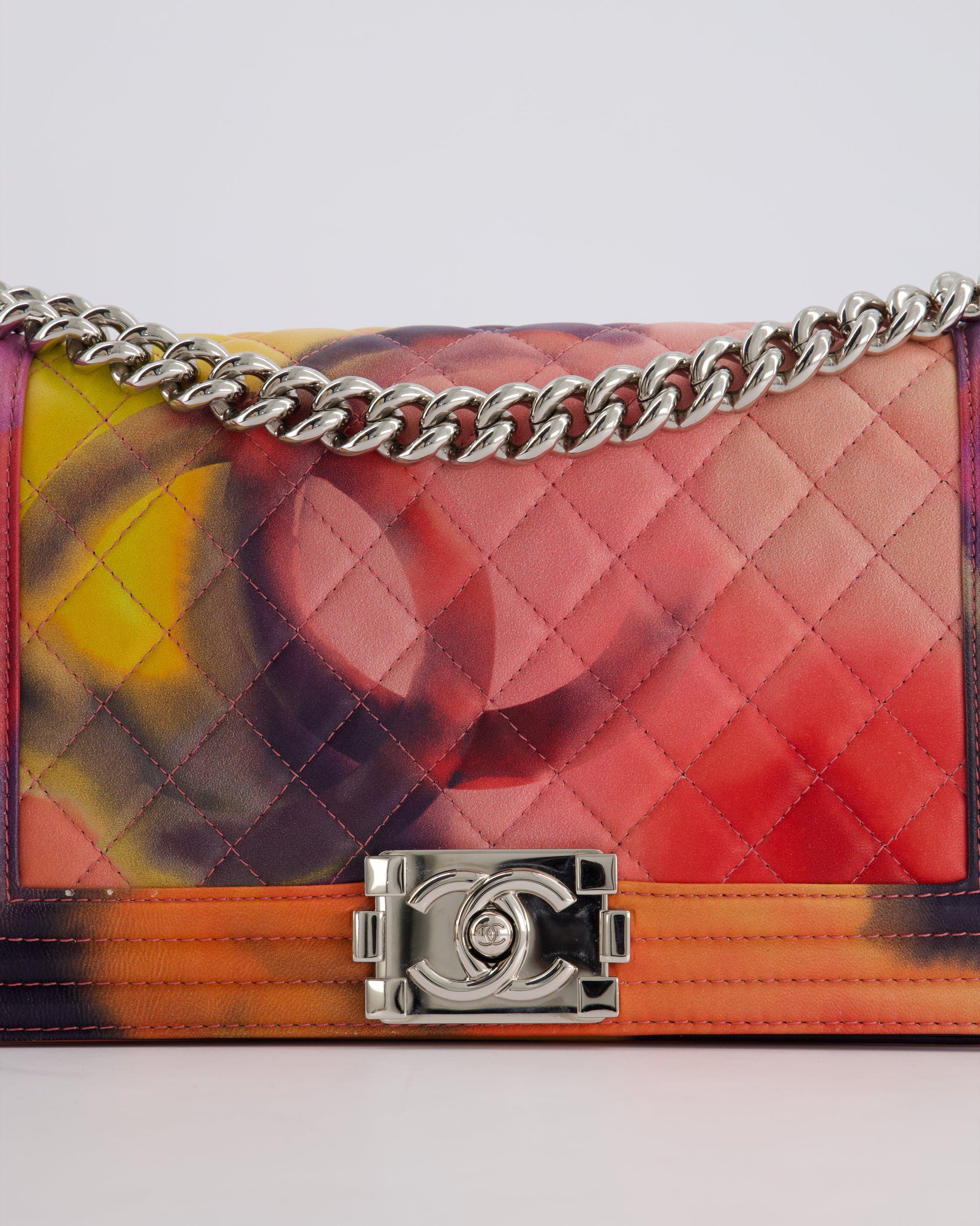 Chanel 14/S Pink Flower Power Quilted CC Lambskin Medium Boy Bag with Polished Silver Hardware