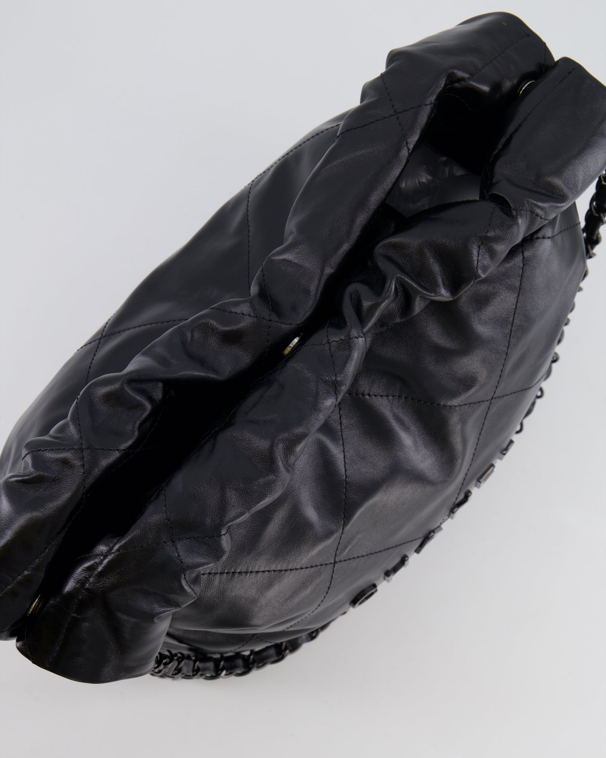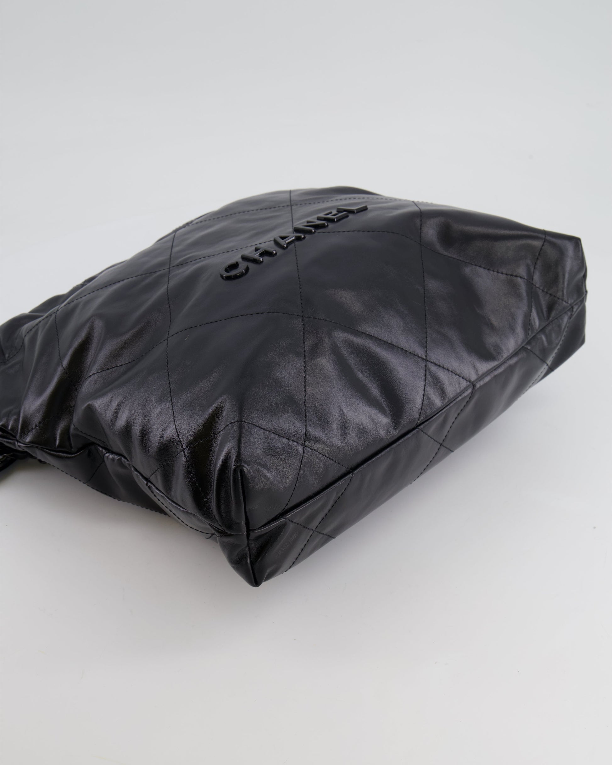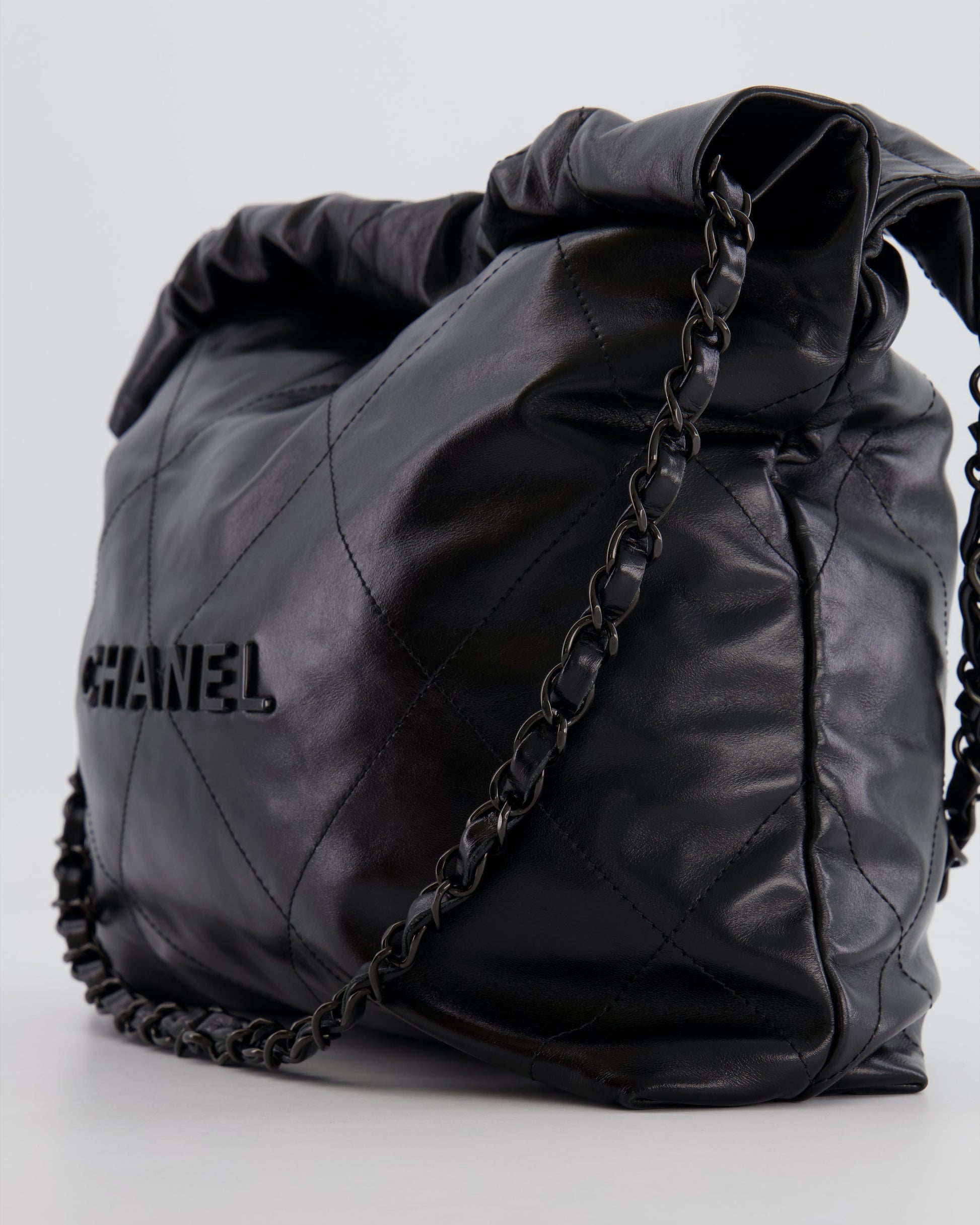 Chanel 22 Small Hobo Bag in Black Calfskin Leather with So Black Hardware