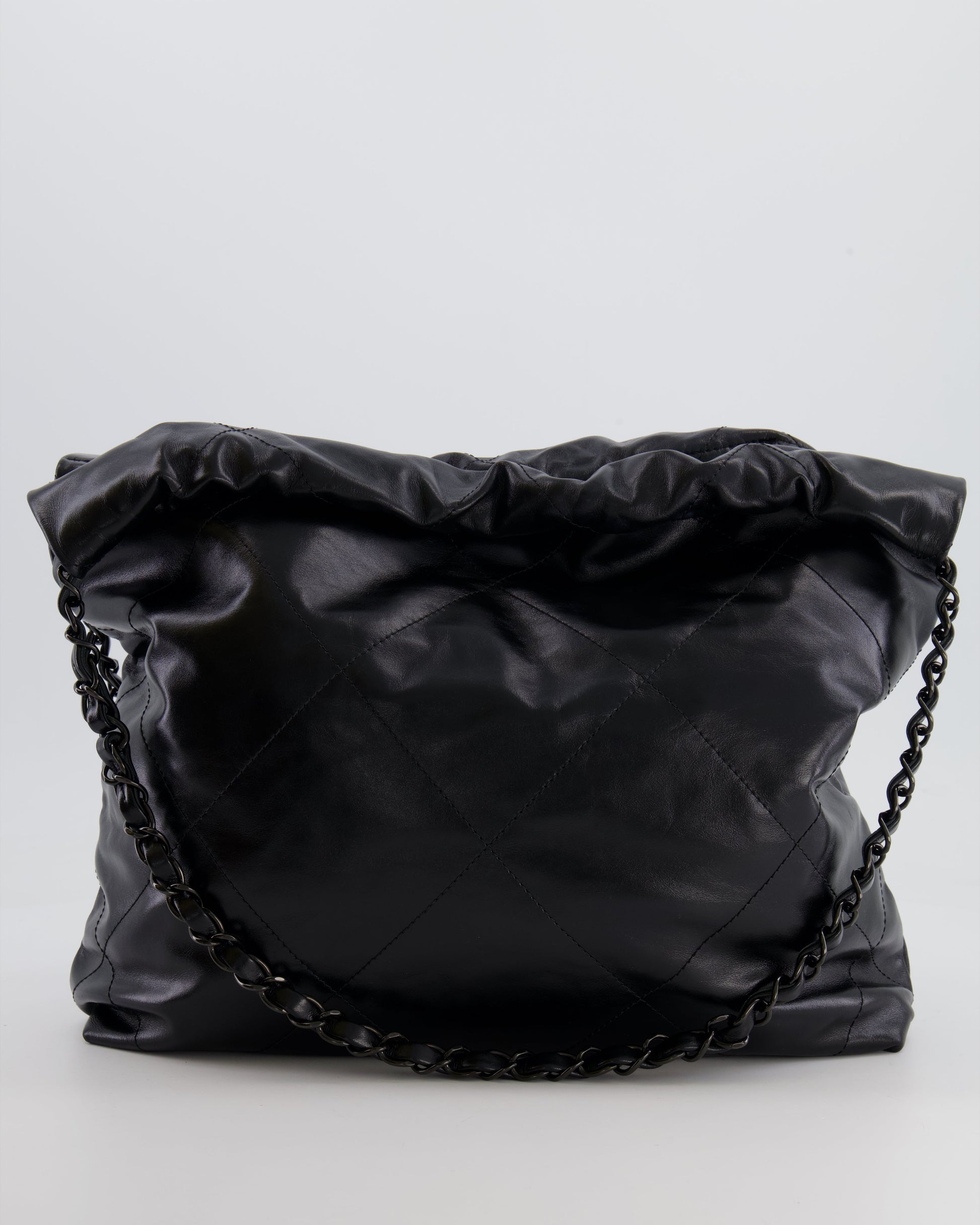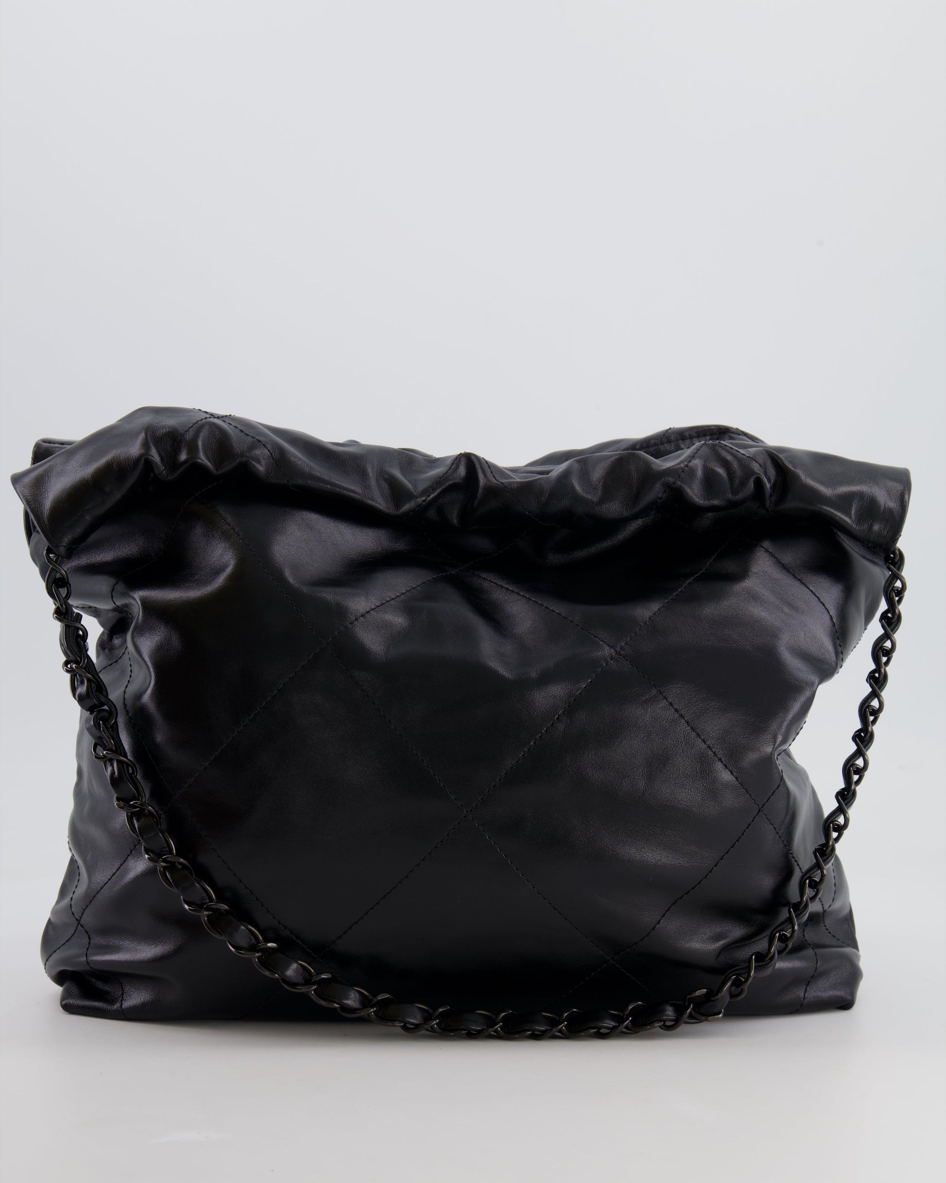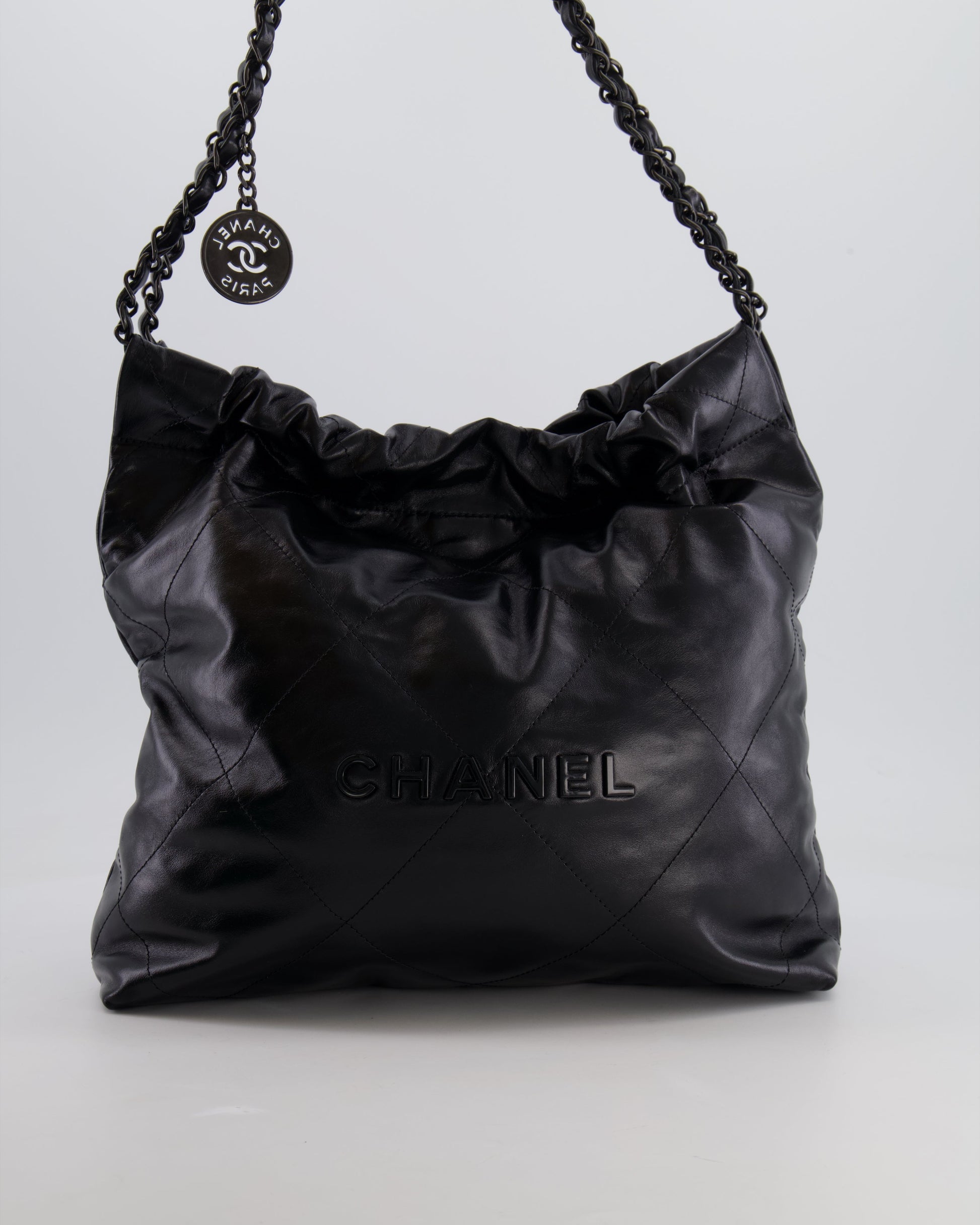 Chanel 22 Small Hobo Bag in Black Calfskin Leather with So Black Hardware