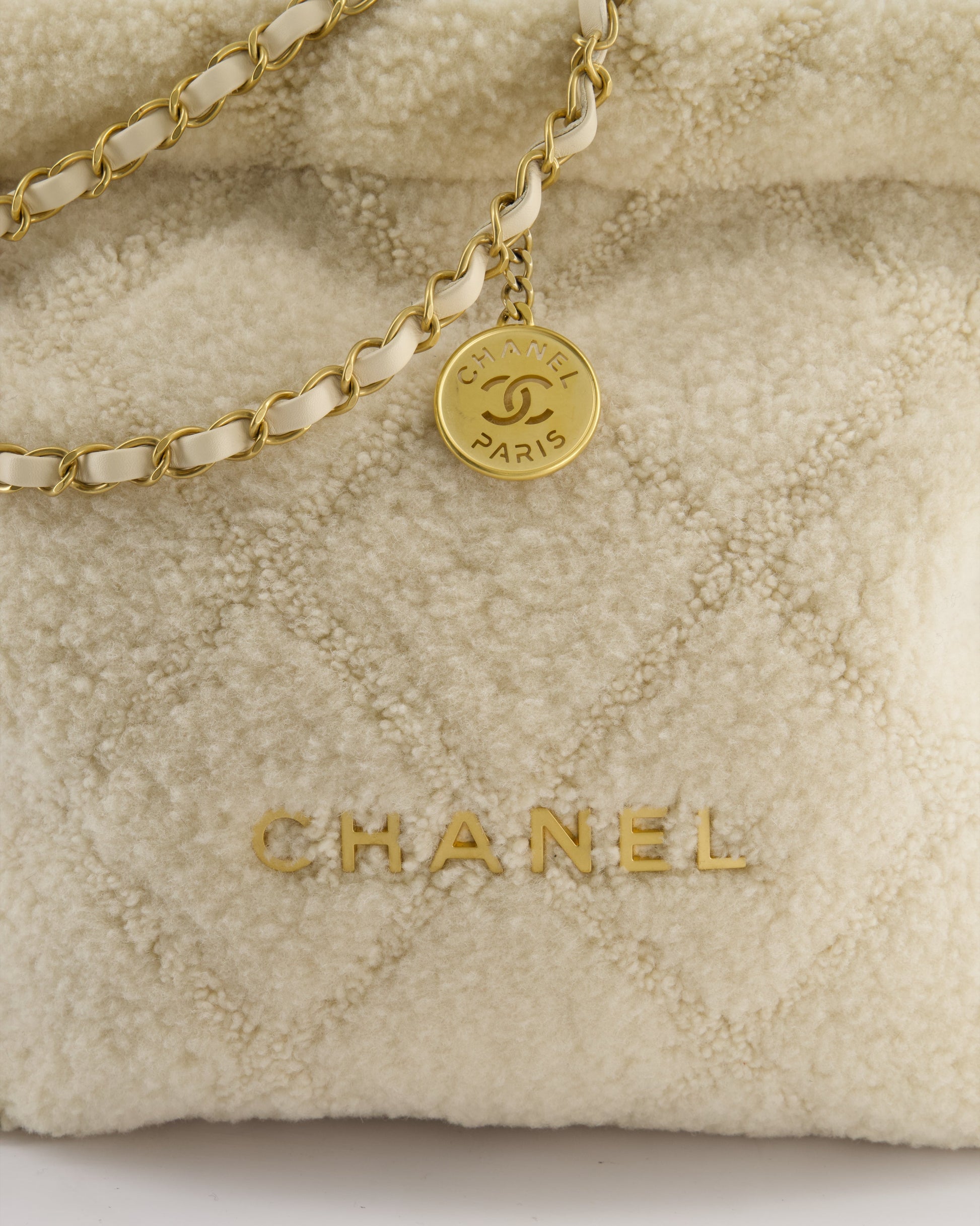 Chanel 24/K Beige Large 22 Shearling Bag with Champagne Gold Hardware
