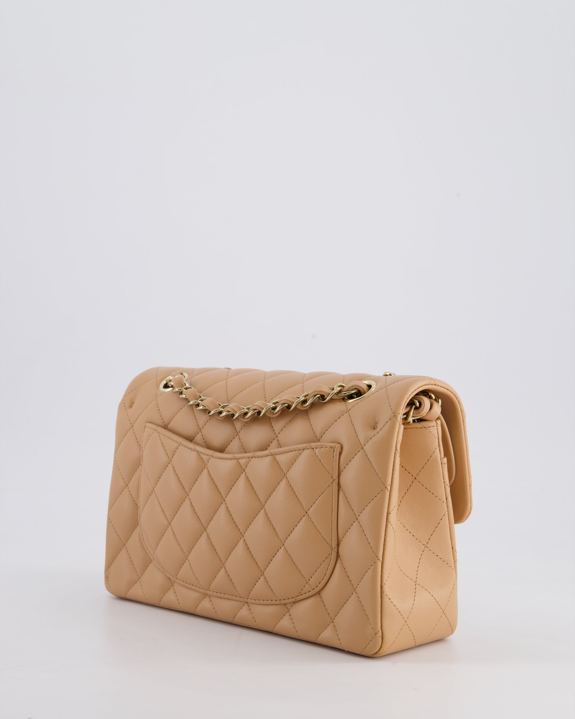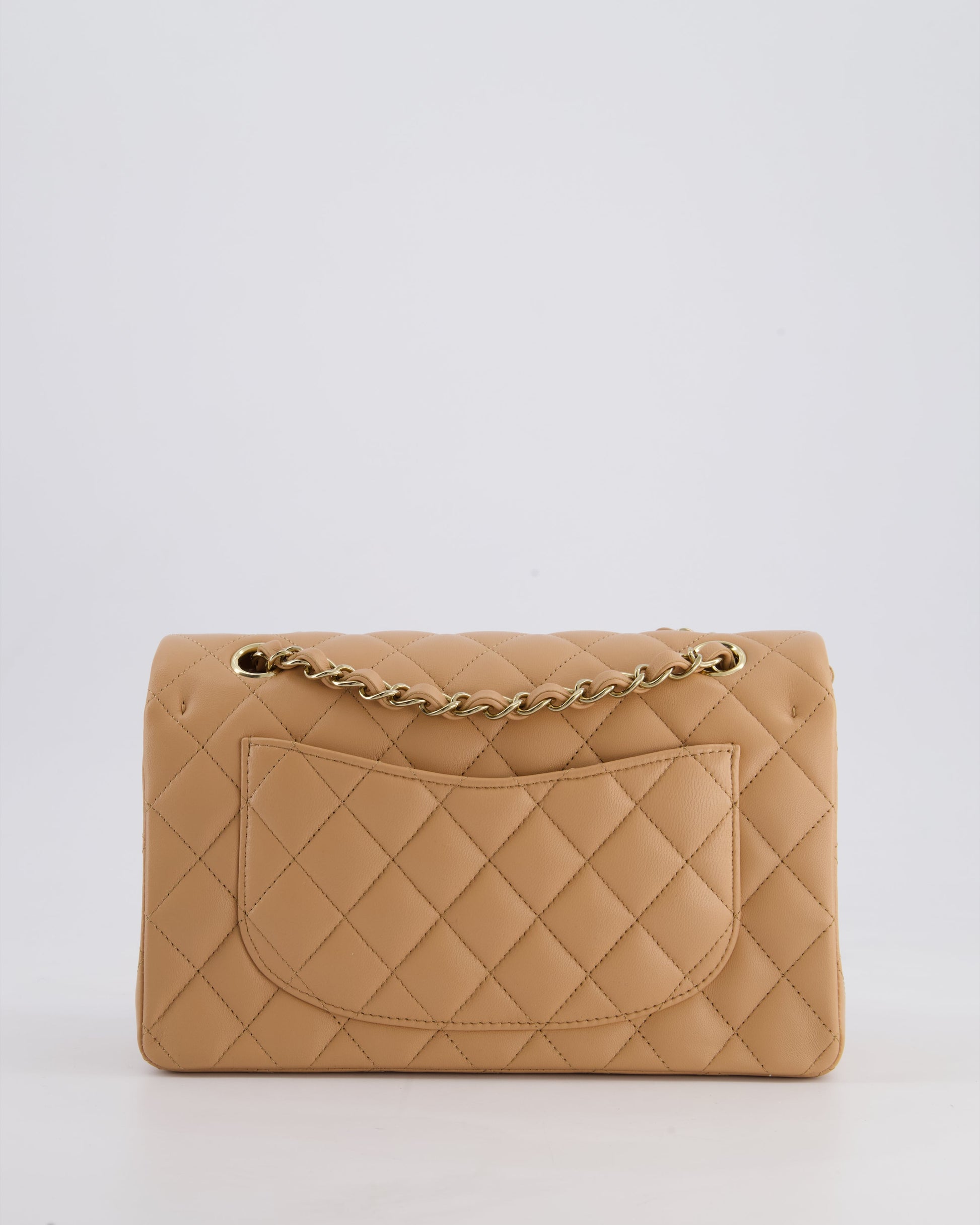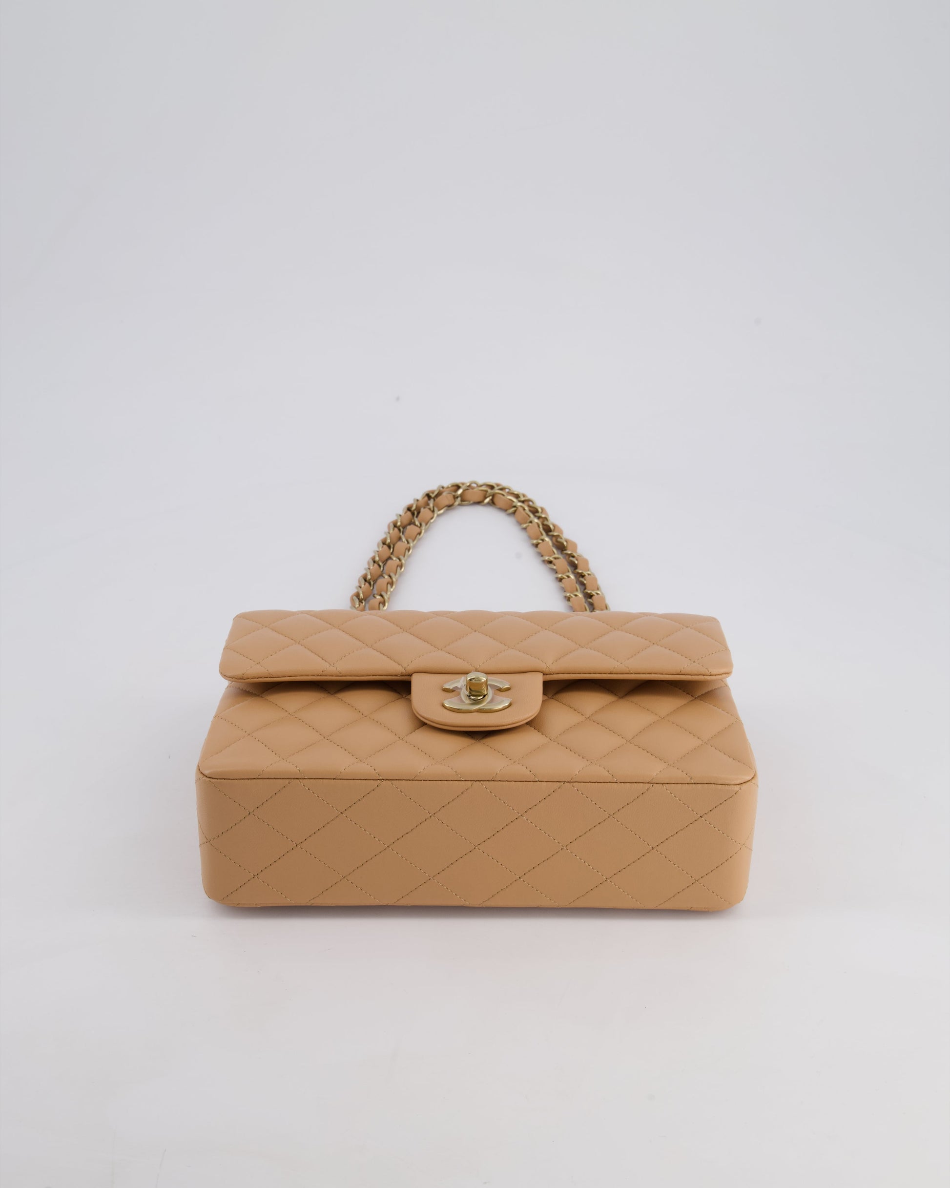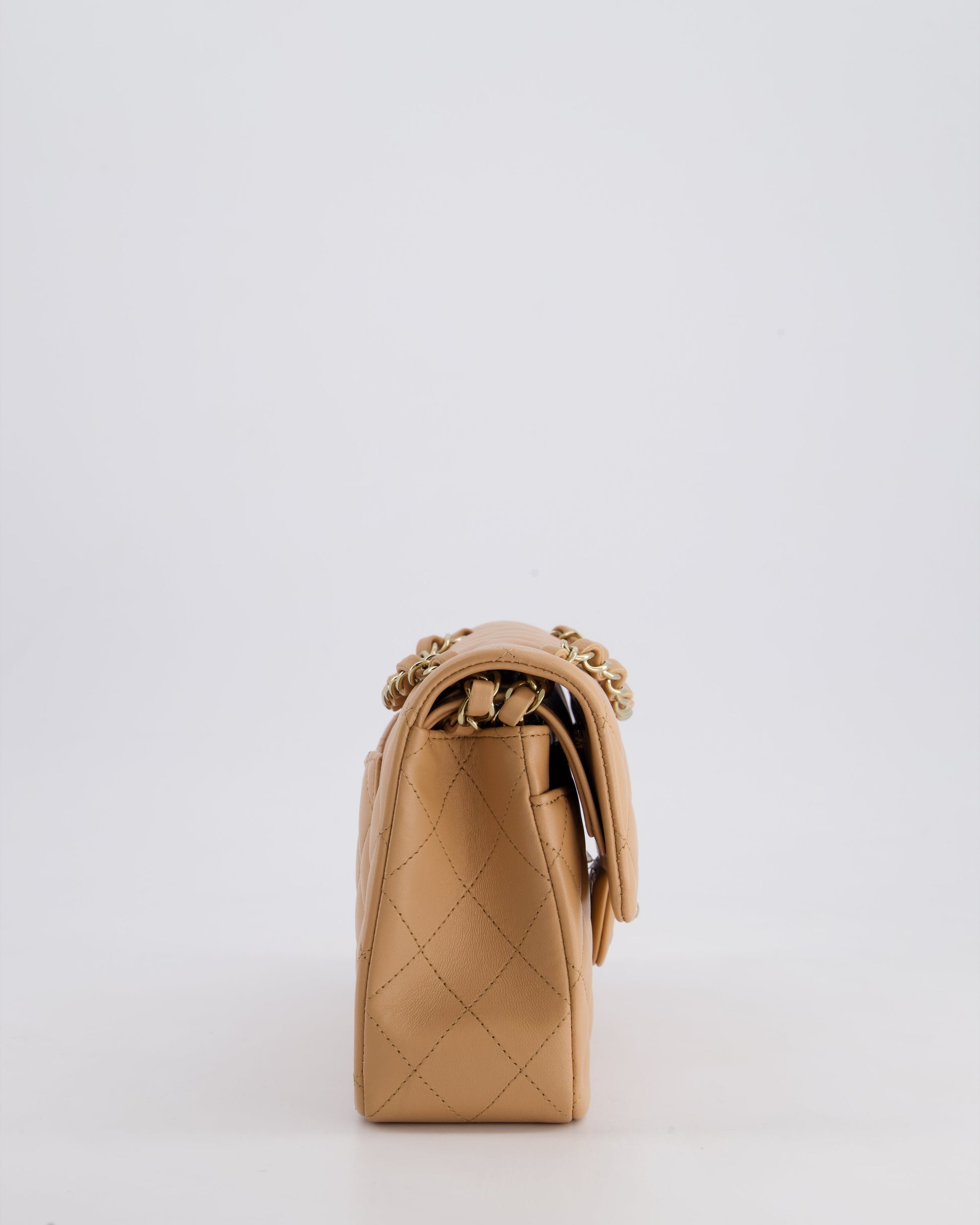 Chanel Beige Small Classic Double Flap Bag in Lambskin Leather with Champagne Gold Hardware