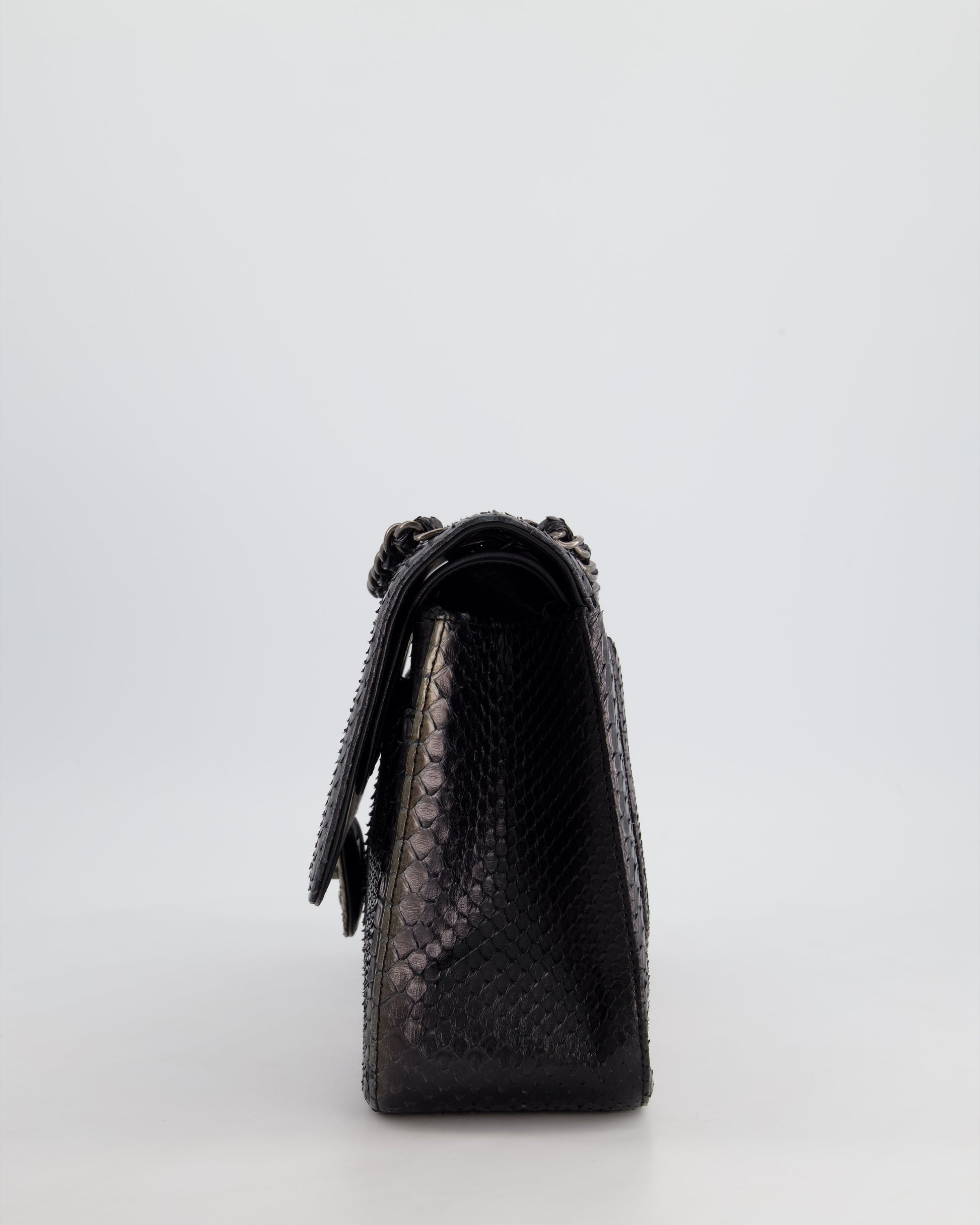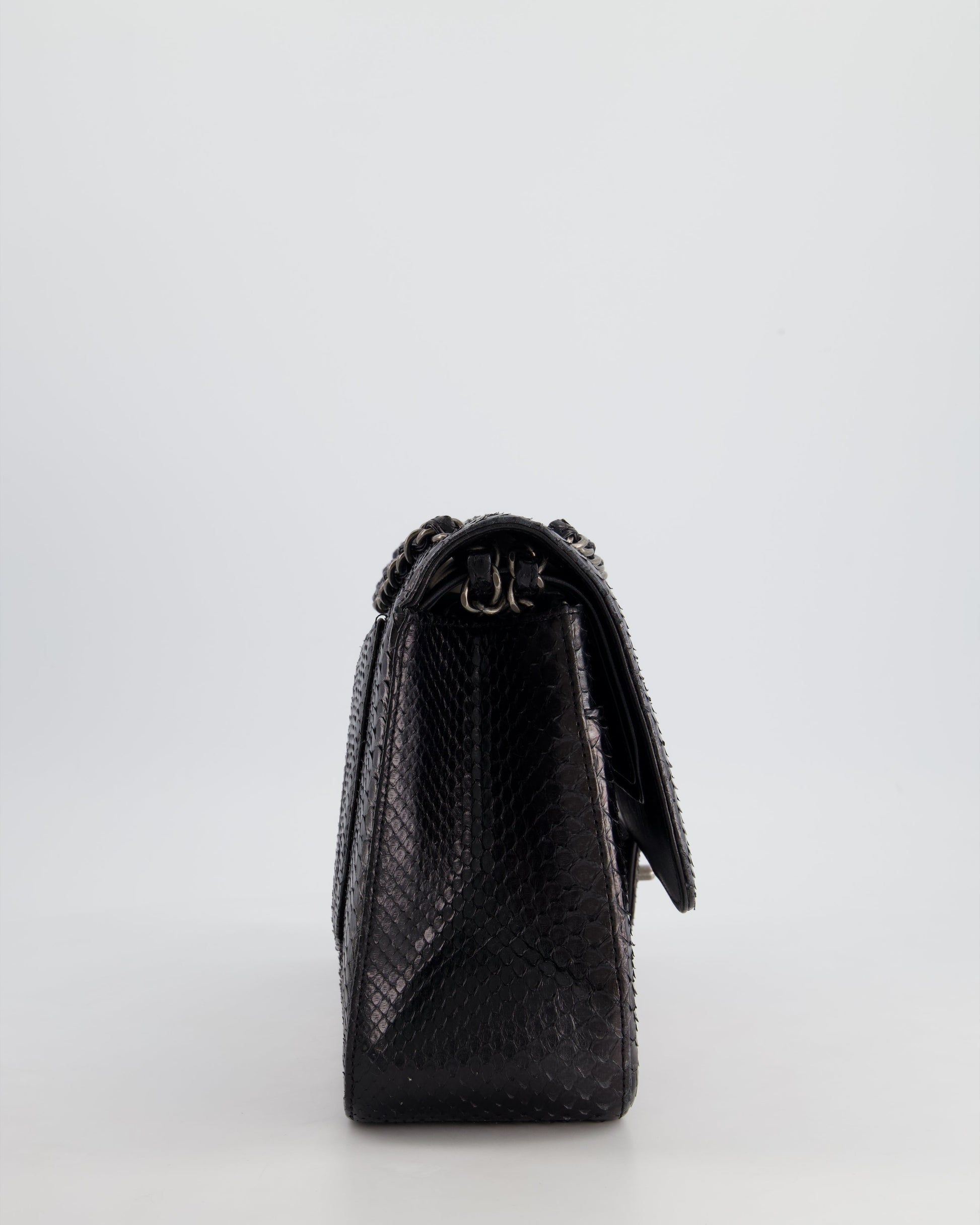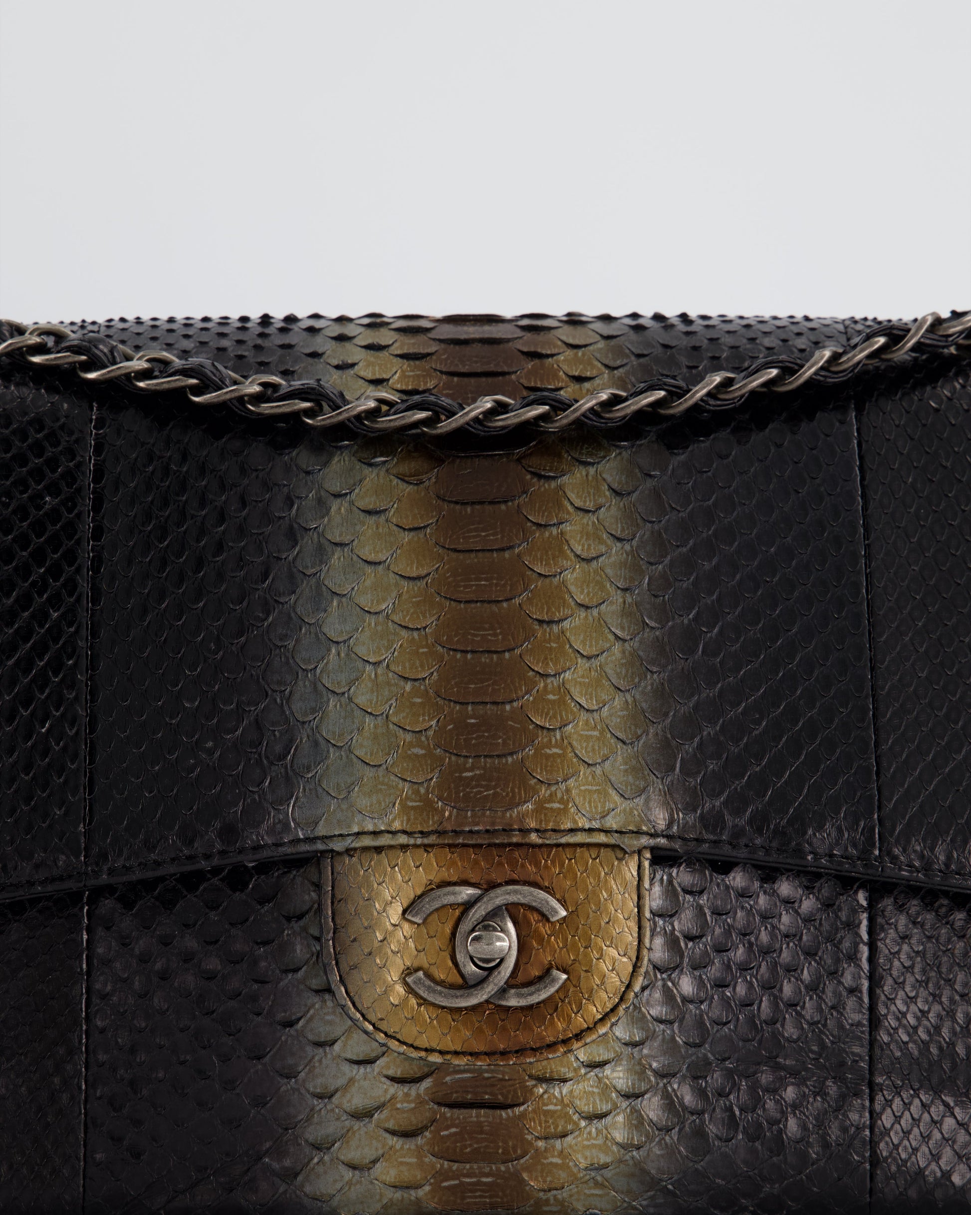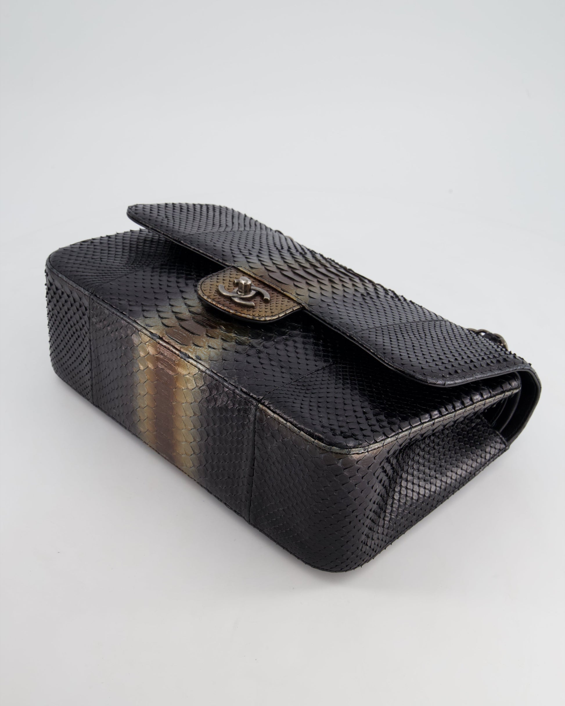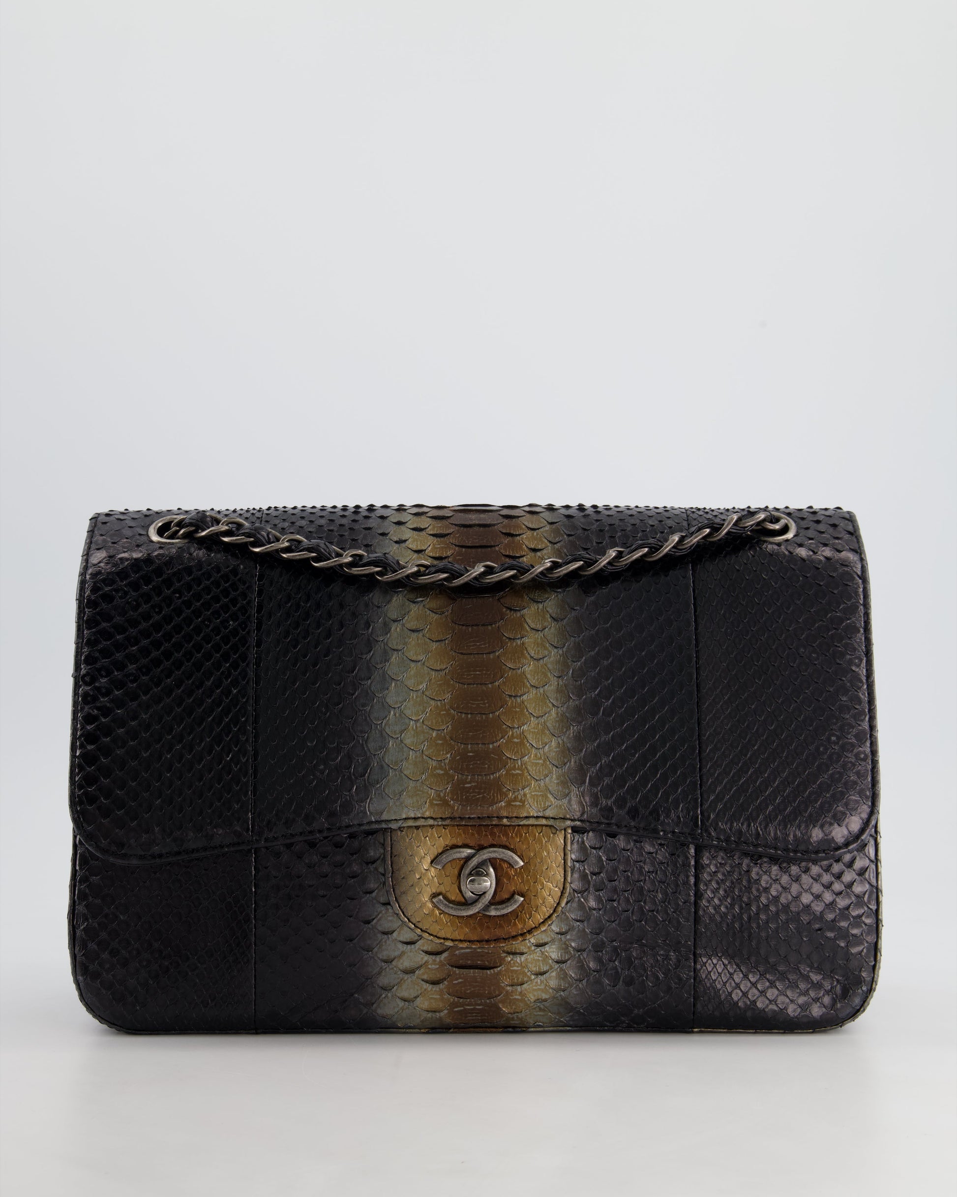 Chanel Black and Brown Python Leather Jumbo Classic Double Flap Bag with Gunmetal Hardware