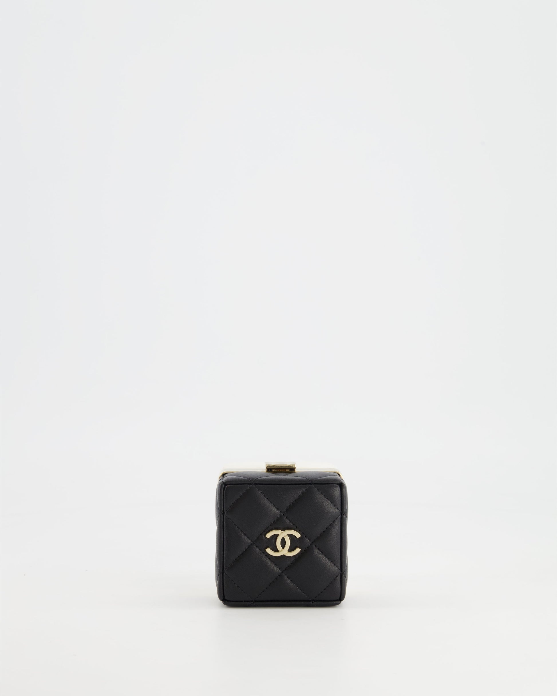 Chanel Black and White Micro Box Square Bag in Lambskin and Gold Hardware