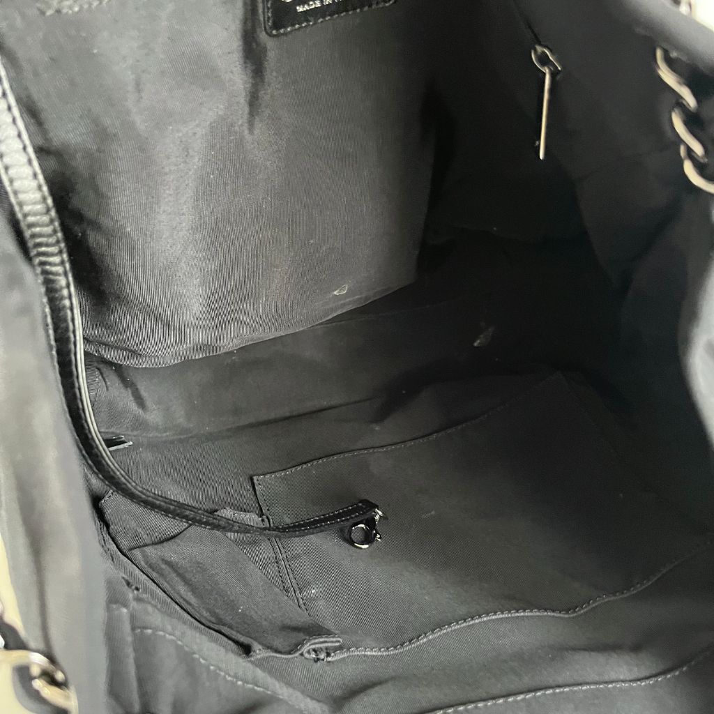 Chanel black and white ridged satin shoulder bag