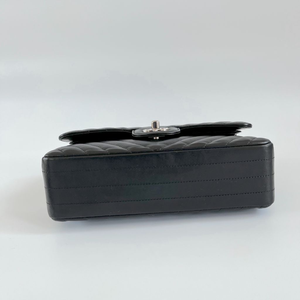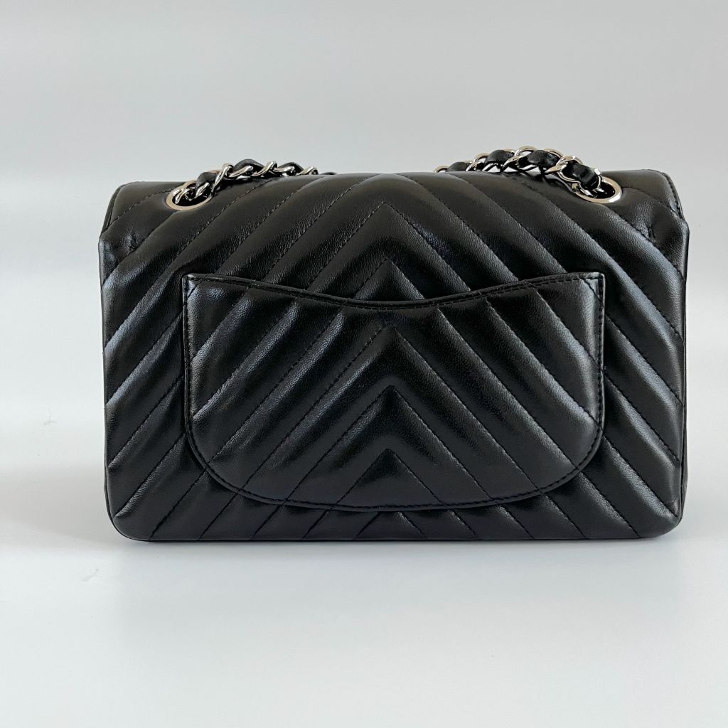 Chanel black chevron quilted leather double flap bag with silver hardware