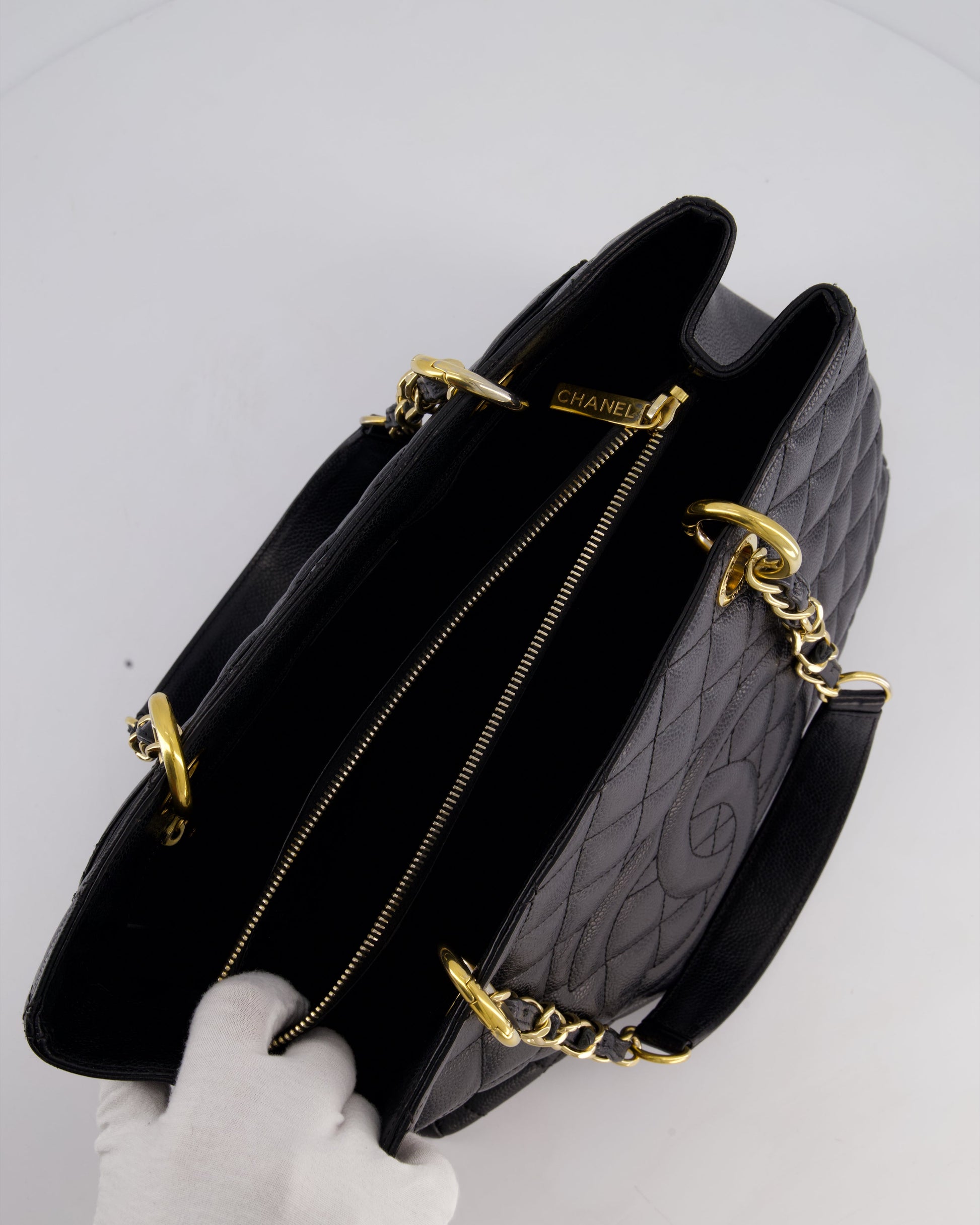 Chanel Black GST Grand Shopper Tote Bag in Caviar Leather with Gold Hardware